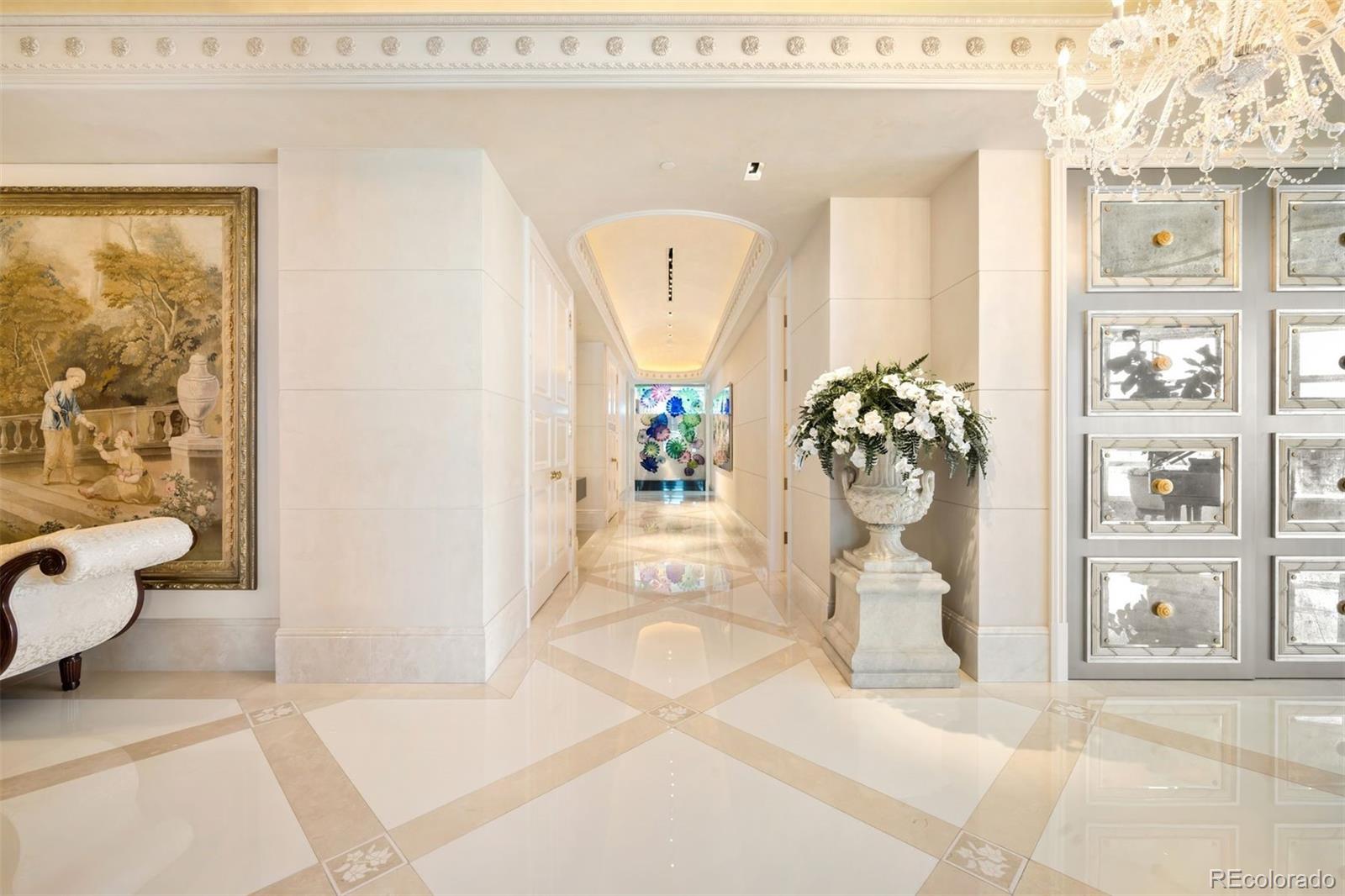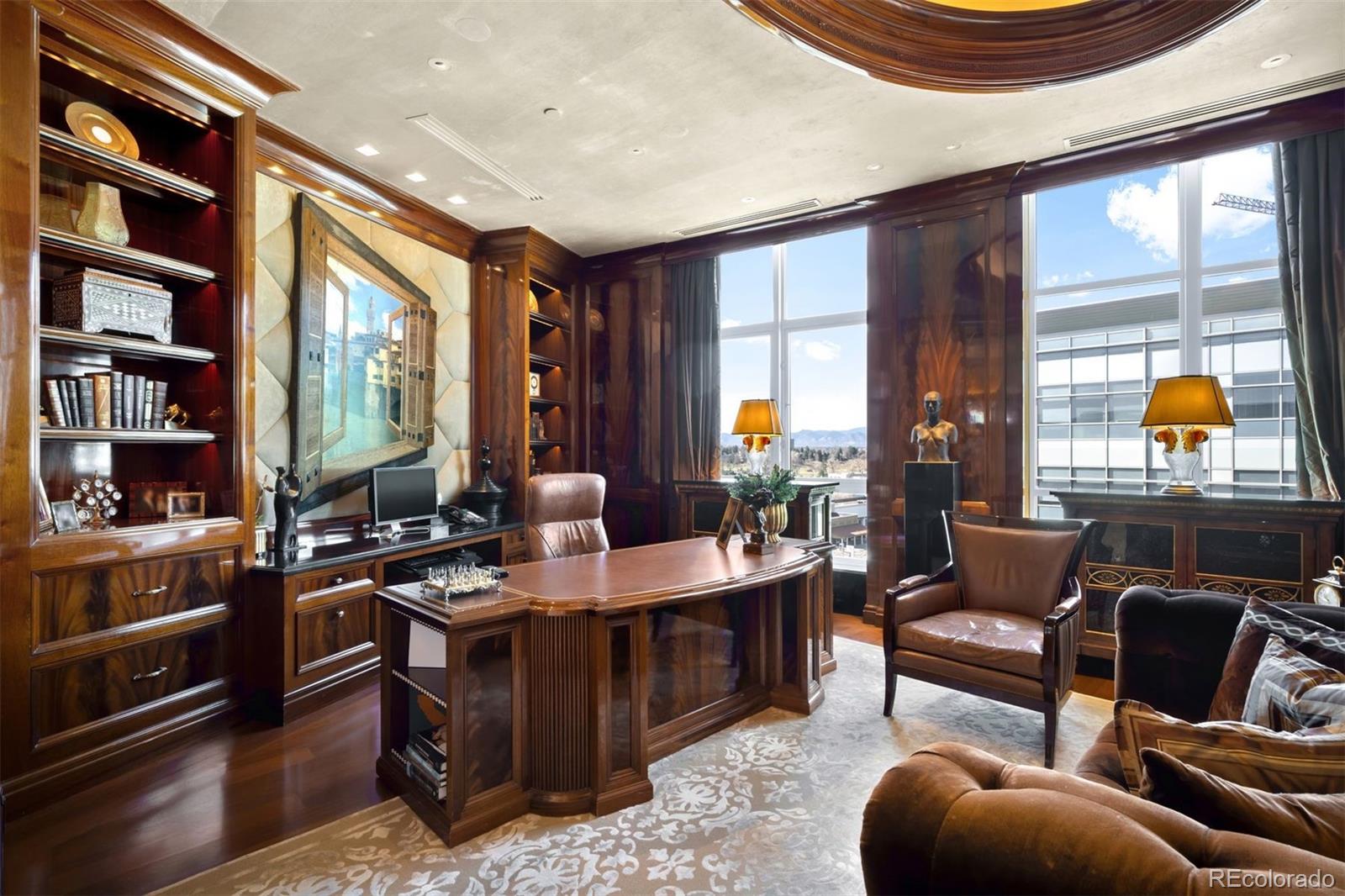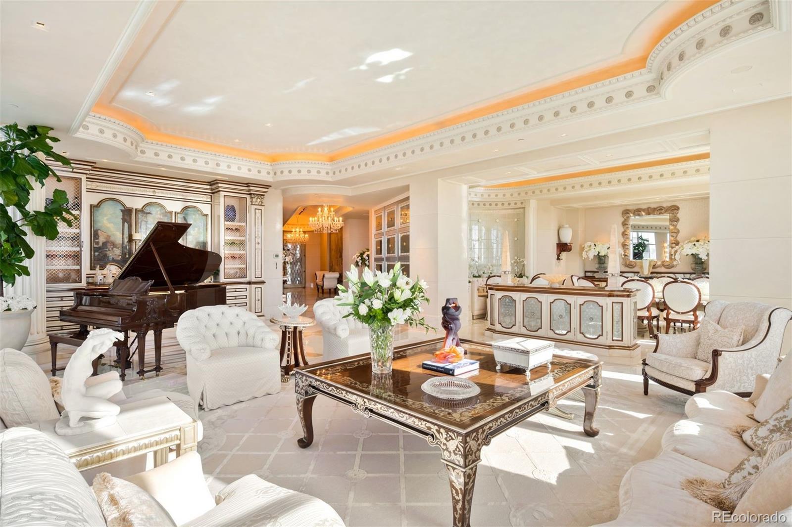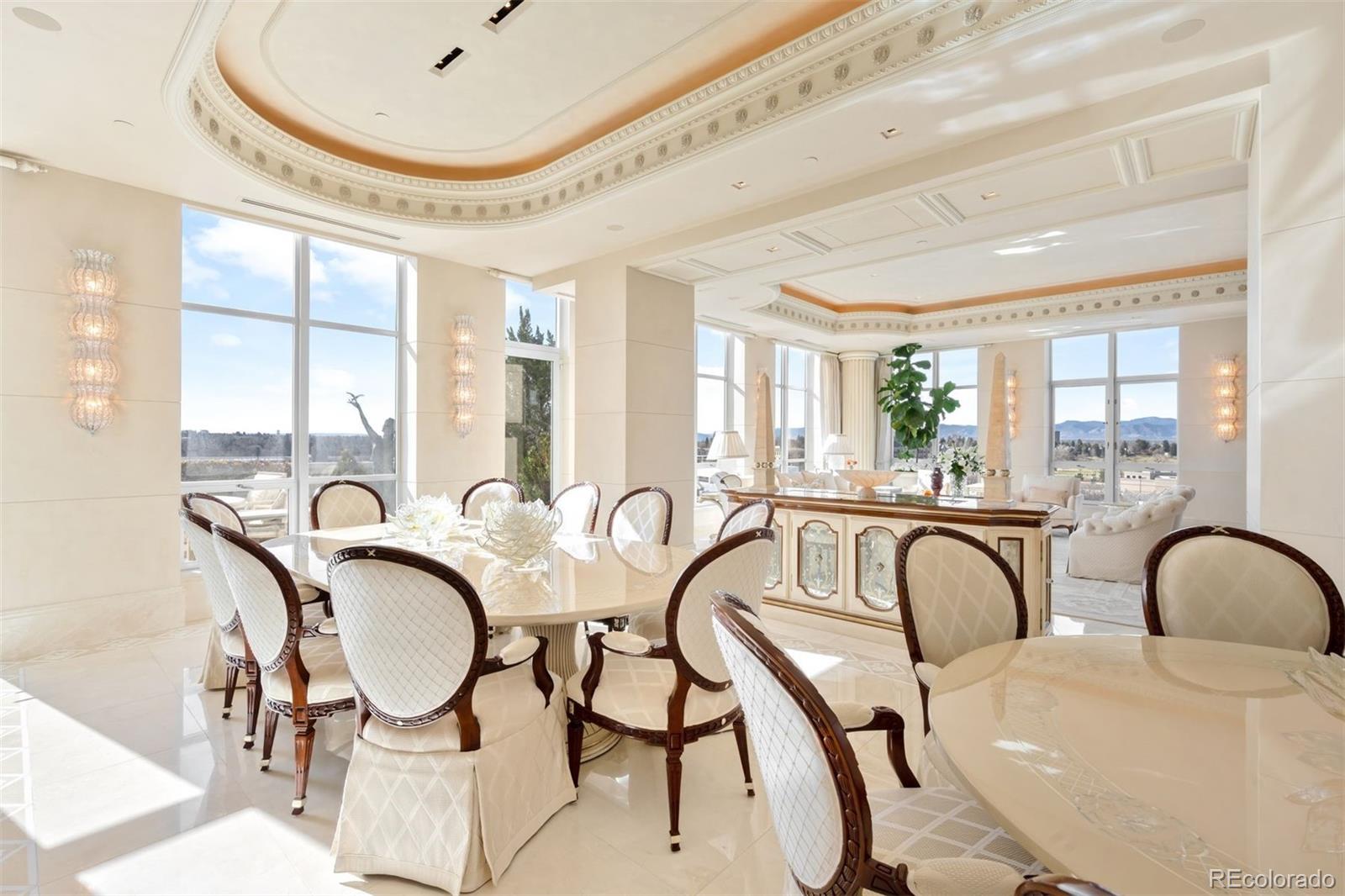 Expertly envisioned and curated, this extraordinary penthouse is a masterclass in design, craftsmanship, and timeless European elegance. Rich mahogany walls, bespoke millwork, and 10-foot doors create a striking sense of arrival, while tailored materials and soft ambient lighting establish an atmosphere that is both grand and intimately refined. Perched in the heart of Cherry Creek, the residence pairs a sophisticated European aesthetic with a floor plan designed for elevated entertaining and effortless daily living. Expansive living spaces unfold beneath soaring ceilings and walls of glass, capturing natural light and framing breathtaking mountain views over the iconic Denver Country Club golf course. A formal dining room graciously accommodates 30+ guests, complemented by a richly appointed mahogany study and two beautifully finished en-suite guest rooms. The primary suite is a private sanctuary, featuring an expansive bedroom, dual custom closets designed to impress the most discerning buyer, and an elegant, spa-inspired bath that evokes a five-star retreat. A remarkable 1,230 square foot terrace extends the living experience outdoors, offering an extraordinary setting for elegant gatherings or quiet evenings immersed in panoramic city lights and Colorado sunsets. Spanning over 7,100 finished square feet, the residence also includes four dedicated parking spaces. At NorthCreek, residents enjoy a level of privacy, security, and service reserved for the world's finest addresses, with dedicated concierge, valet, and porter services. All just moments from the acclaimed dining, luxury boutiques, and renowned galleries of Cherry Creek North.