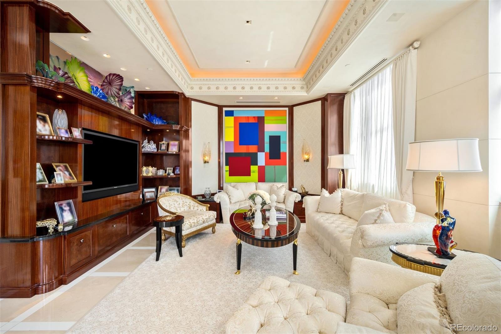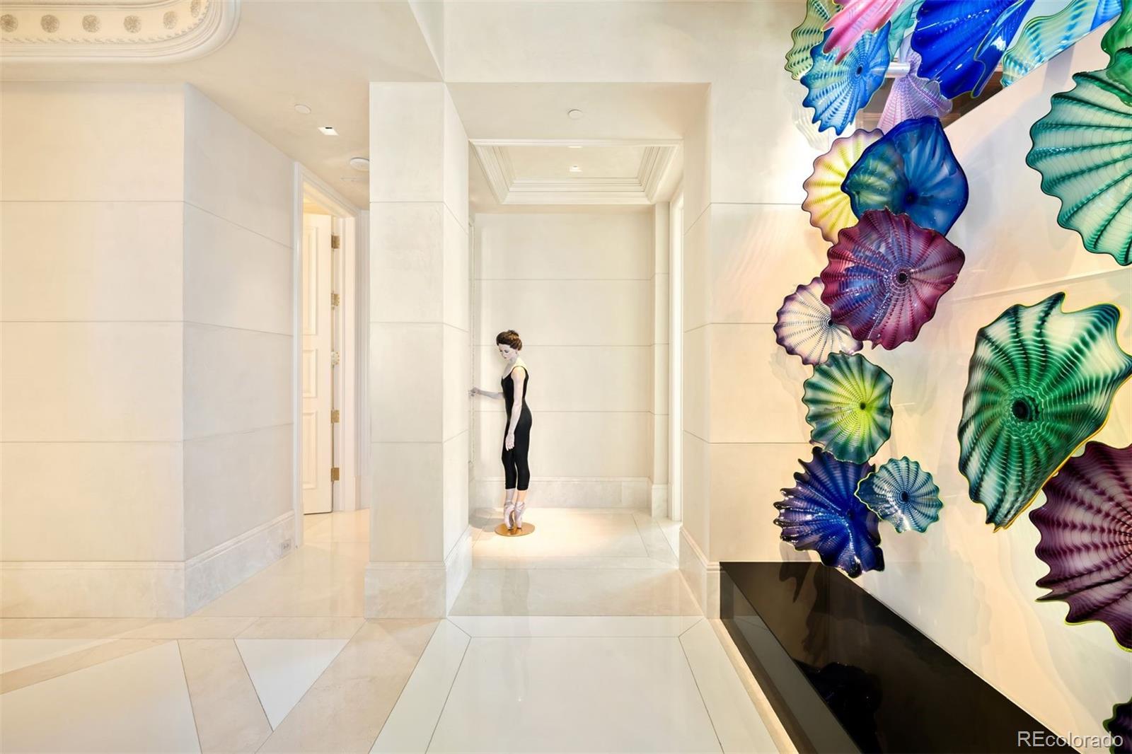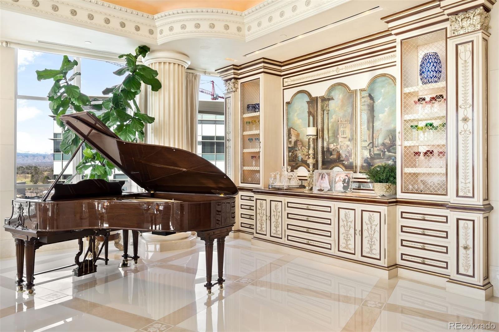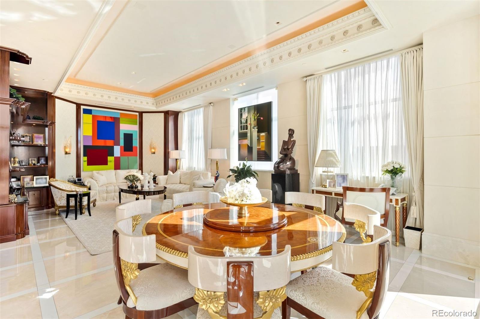 Expertly envisioned and curated, this extraordinary penthouse is a masterclass in design, craftsmanship, and timeless European elegance. Rich mahogany walls, bespoke millwork, and 10-foot doors create a striking sense of arrival, while tailored materials and soft ambient lighting establish an atmosphere that is both grand and intimately refined. Perched in the heart of Cherry Creek, the residence pairs a sophisticated European aesthetic with a floor plan designed for elevated entertaining and effortless daily living. Expansive living spaces unfold beneath soaring ceilings and walls of glass, capturing natural light and framing breathtaking mountain views over the iconic Denver Country Club golf course. A formal dining room graciously accommodates 30+ guests, complemented by a richly appointed mahogany study and two beautifully finished en-suite guest rooms. The primary suite is a private sanctuary, featuring an expansive bedroom, dual custom closets designed to impress the most discerning buyer, and an elegant, spa-inspired bath that evokes a five-star retreat. A remarkable 1,230 square foot terrace extends the living experience outdoors, offering an extraordinary setting for elegant gatherings or quiet evenings immersed in panoramic city lights and Colorado sunsets. Spanning over 7,100 finished square feet, the residence also includes four dedicated parking spaces. At NorthCreek, residents enjoy a level of privacy, security, and service reserved for the world's finest addresses, with dedicated concierge, valet, and porter services. All just moments from the acclaimed dining, luxury boutiques, and renowned galleries of Cherry Creek North.