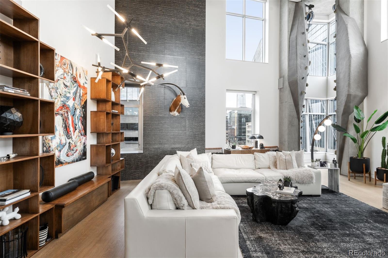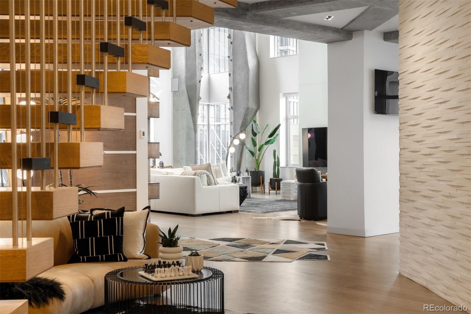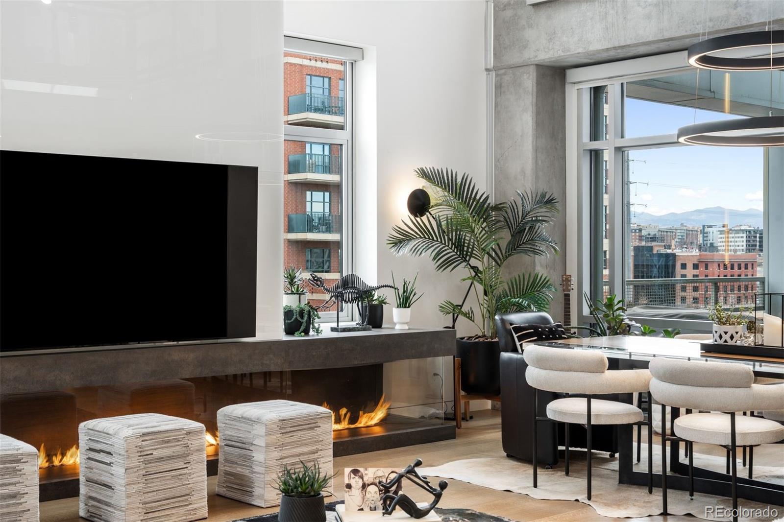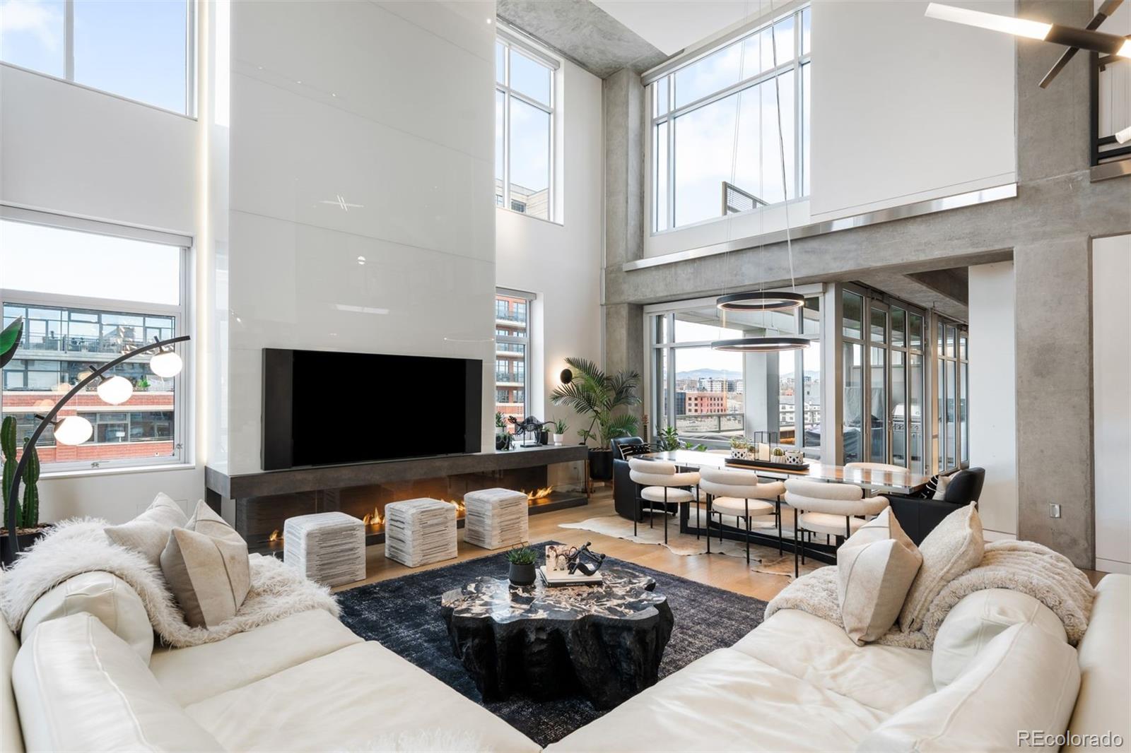 Perched atop one of the most desirable buildings in Downtown Denver, Penthouse 6 is a rare opportunity to own a custom-designed, multi-level residence in the heart of Riverfront Park, arguably the city's most walkable neighborhood. Encompassing over 4,000 square feet of artfully curated interiors, this penthouse offers a rare blend of architectural sophistication, privacy, and sweeping mountain-to-city views that frame every living space. Completely reimagined with no expense spared, the residence is anchored by a showstopping chef's kitchen with Miele appliances, a built-in espresso machine and steamer, and striking leathered granite waterfall countertops, all flowing seamlessly onto a private terrace ideal for al fresco dining. The soaring living room impresses with a bespoke 12ft glass fireplace, a rock climbing wall, designer wall tile, and floor-to-ceiling windows. Additional main-floor highlights include a chic guest suite, a custom powder room, a cozy reading lounge beneath the architectural staircase, and a full-sized laundry room. Upstairs, the serene primary suite is a true sanctuary with a private balcony, spa-like five-piece bath, sauna, custom walk-in closet, and an additional washer/dryer. Two additional bedrooms and a loft lounge with outdoor access complete the upper level. This is the only residence in the building to offer a fully private rooftop deck, creating an exceptional outdoor retreat complete with a hot tub and sweeping panoramic views. The home is powered by a Savant automation system, giving you full control of lighting, climate, and media from your phone. Includes three oversized deeded garage spaces in a secure, heated building. Residents enjoy professional management, premium amenities, and direct access to Commons Park, Confluence Park, Union Station, Larimer Square, the Ballpark District, and Denver's best dining and cultural venues. A lifestyle of elegance, privacy, and connection to the city's very best.