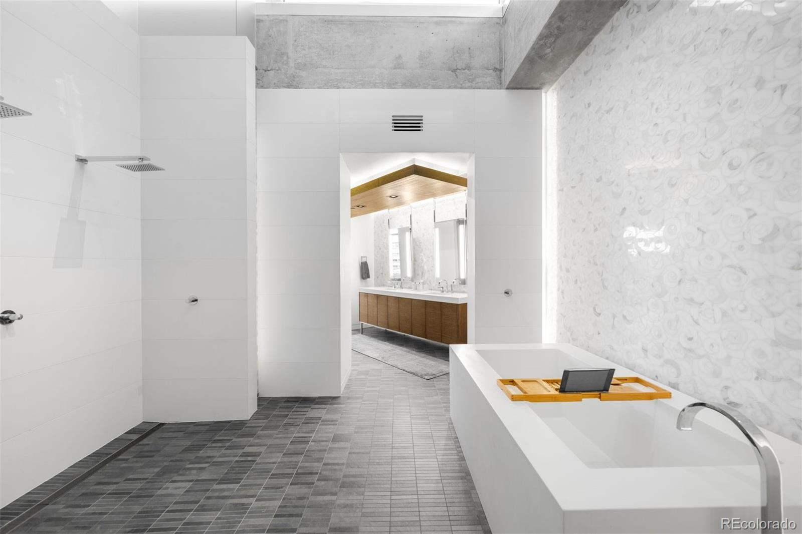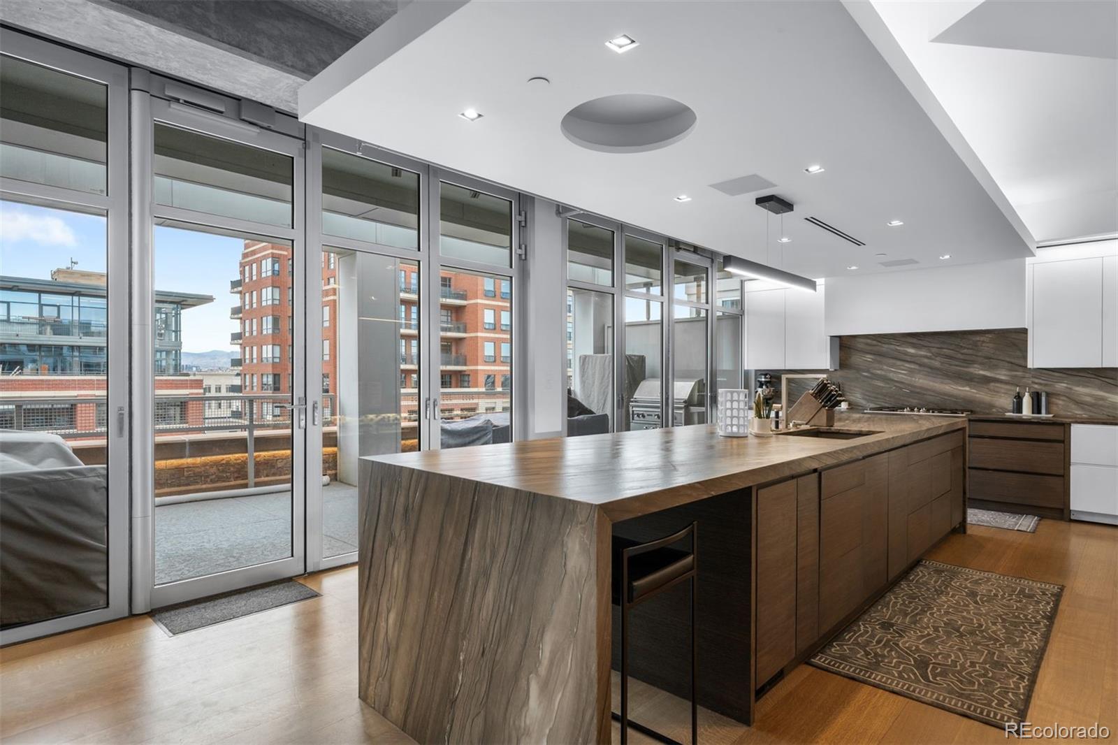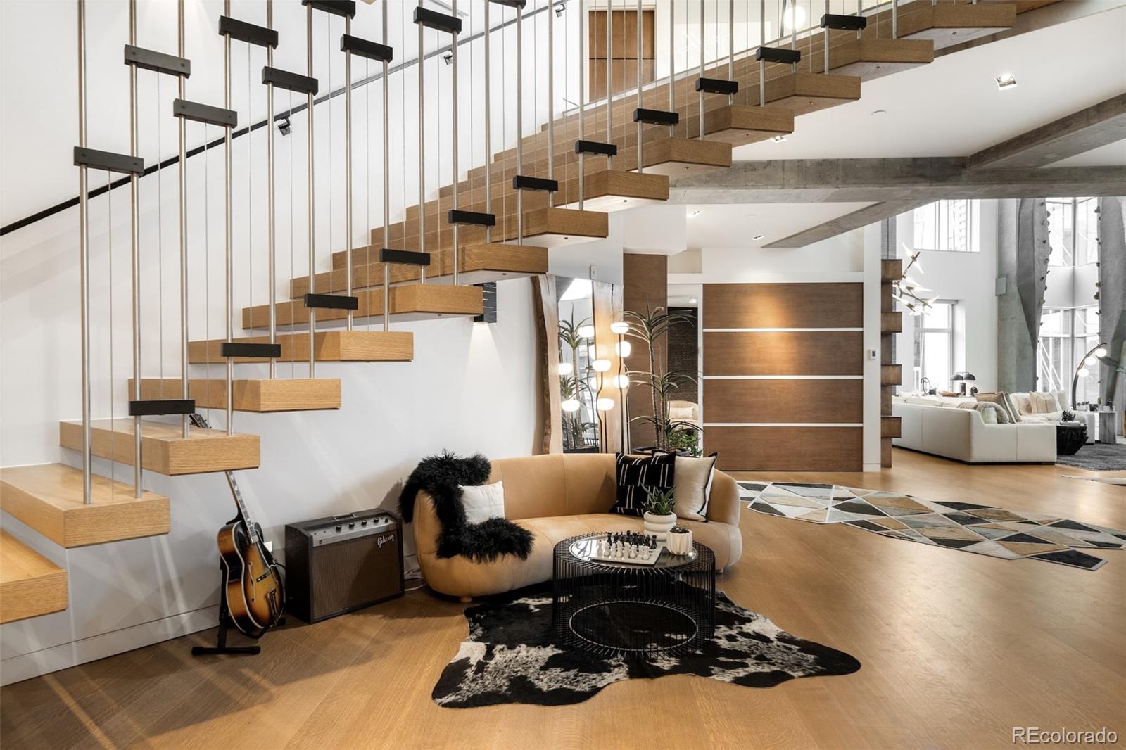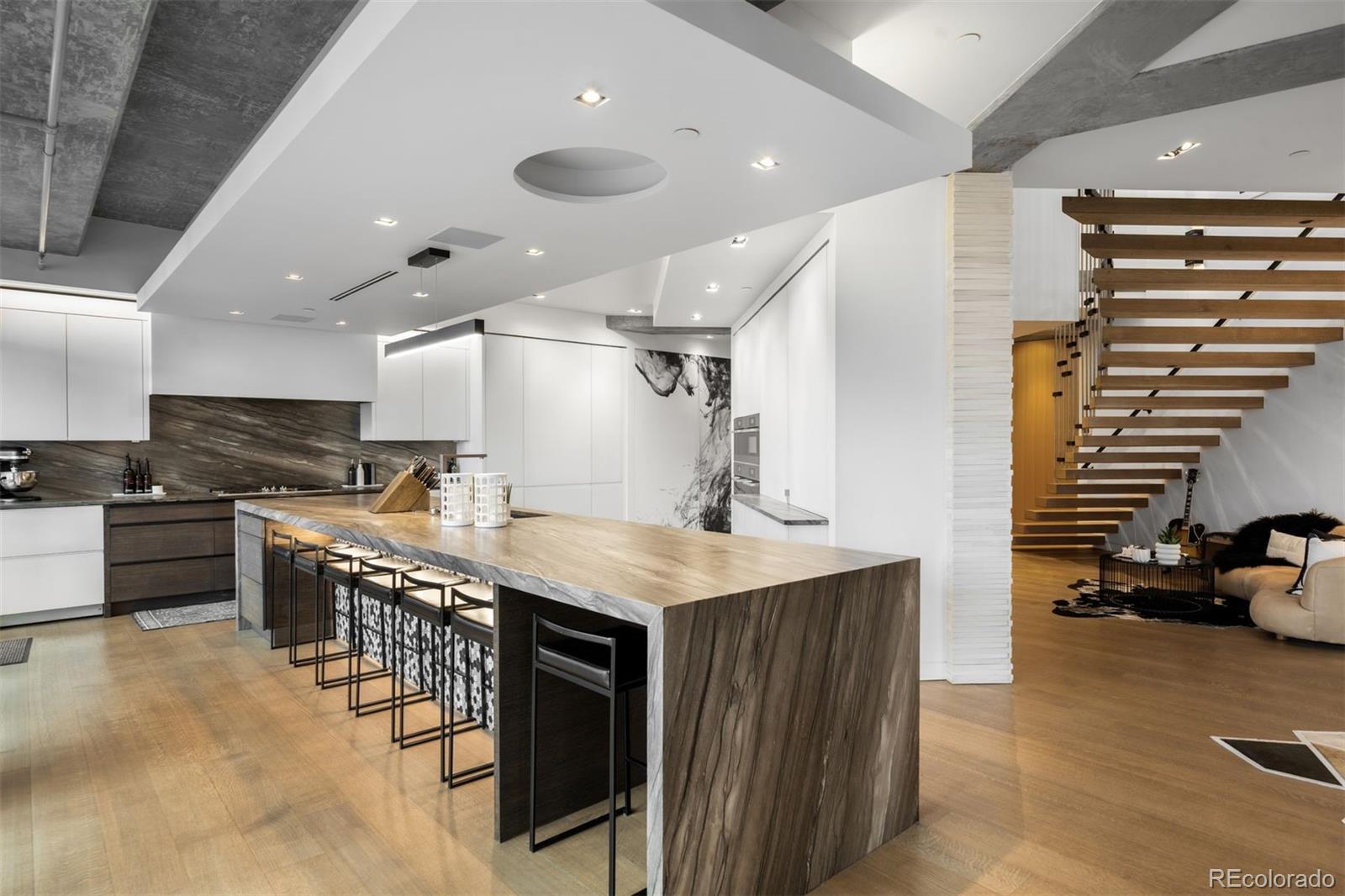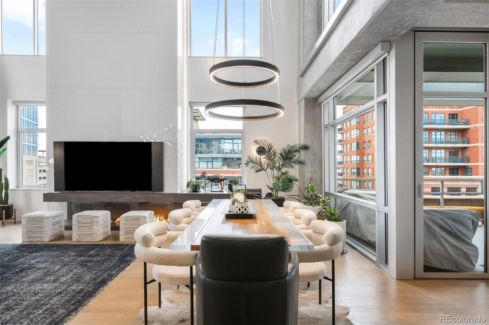 Perched atop one of the most desirable buildings in Downtown Denver, Penthouse 6 is a rare opportunity to own a custom-designed, multi-level residence in the heart of Riverfront Park, arguably the city's most walkable neighborhood. Encompassing over 4,000 square feet of artfully curated interiors, this penthouse offers a rare blend of architectural sophistication, privacy, and sweeping mountain-to-city views that frame every living space. Completely reimagined with no expense spared, the residence is anchored by a showstopping chef's kitchen with Miele appliances, a built-in espresso machine and steamer, and striking leathered granite waterfall countertops, all flowing seamlessly onto a private terrace ideal for al fresco dining. The soaring living room impresses with a bespoke 12ft glass fireplace, a rock climbing wall, designer wall tile, and floor-to-ceiling windows. Additional main-floor highlights include a chic guest suite, a custom powder room, a cozy reading lounge beneath the architectural staircase, and a full-sized laundry room. Upstairs, the serene primary suite is a true sanctuary with a private balcony, spa-like five-piece bath, sauna, custom walk-in closet, and an additional washer/dryer. Two additional bedrooms and a loft lounge with outdoor access complete the upper level. This is the only residence in the building to offer a fully private rooftop deck, creating an exceptional outdoor retreat complete with a hot tub and sweeping panoramic views. The home is powered by a Savant automation system, giving you full control of lighting, climate, and media from your phone. Includes three oversized deeded garage spaces in a secure, heated building. Residents enjoy professional management, premium amenities, and direct access to Commons Park, Confluence Park, Union Station, Larimer Square, the Ballpark District, and Denver's best dining and cultural venues. A lifestyle of elegance, privacy, and connection to the city's very best.