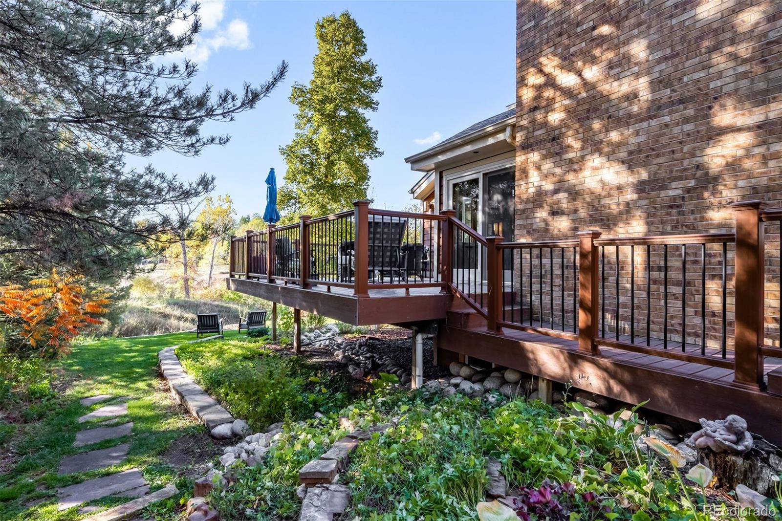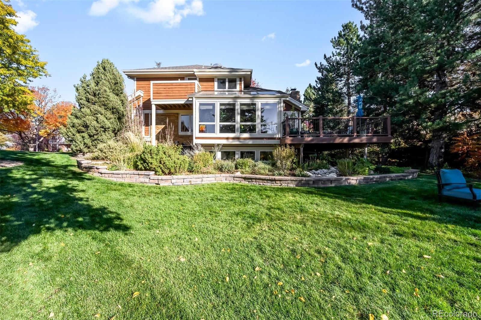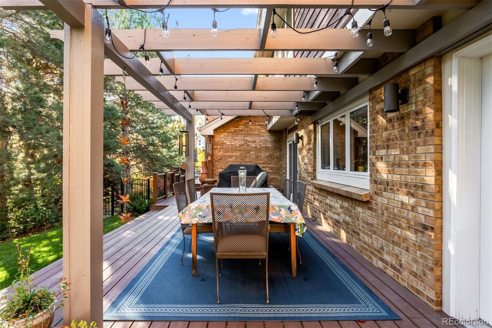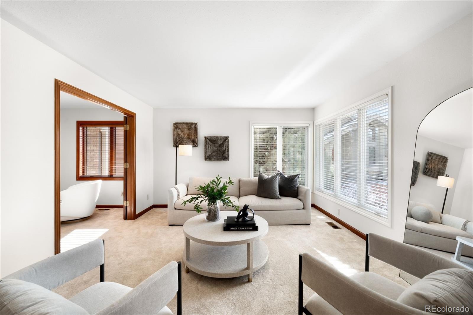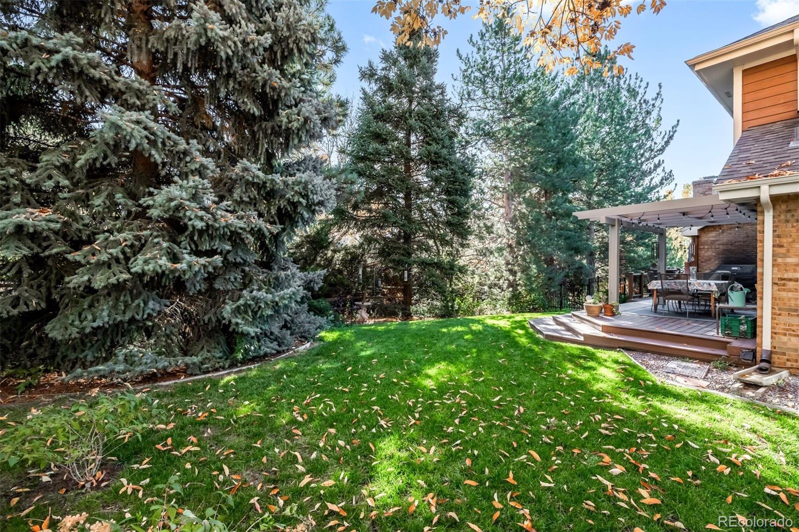 Set at the end of a quiet cul-de-sac backing to Lee Gulch and its integrated trail system, 1920 W. Arapahoe Road is surrounded by mature pines, offering a private setting with frequent wildlife sightings just minutes from downtown Littleton. Inside, generous proportions and natural light define the home, with large windows framing views of the surrounding landscape. Adjacent to the entry, the living and dining rooms create a welcoming sense of arrival, with the family room flowing into an office flanked by custom built-ins. Positioned just off the main living spaces, the kitchen connects to the dining room through a butler's pantry and opens to the family room, with both spaces offering direct access to two outdoor areas and the private, fully fenced backyard, creating an ideal layout for everyday living and entertaining. The family room, complete with a wet bar and gas fireplace, leads into the paneled sunroom and deck, extending the living space with views of Lee Gulch and its trails. Upstairs, the primary suite is spacious and well-appointed, featuring a five-piece bath and a walk-in closet. Three additional bedrooms and two full bathrooms complete the upper level, offering flexibility for family, guests, or work-from-home needs. The garden-level basement features a rec room with a fireplace, a three-quarter bathroom, and a fifth bedroom suited for guests, an office, or a fitness space. An expansive three-car garage completes the property, offering a rare opportunity to enjoy privacy and nature in the Lower Ridge neighborhood within minutes of downtown Littleton and its restaurants, boutiques, and coffee shops.