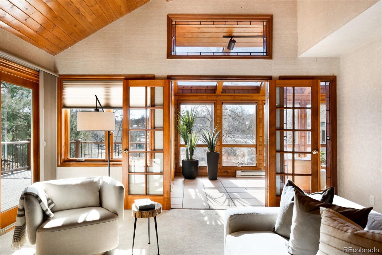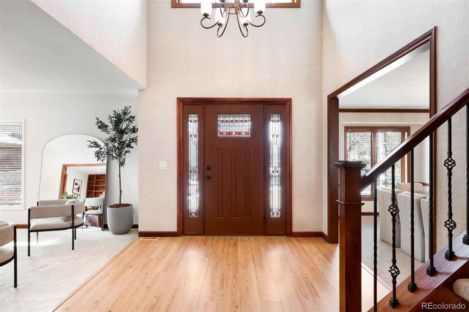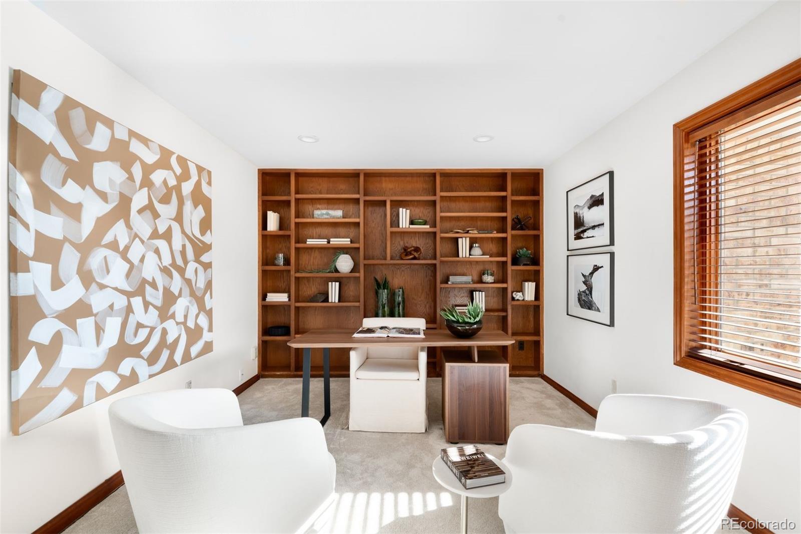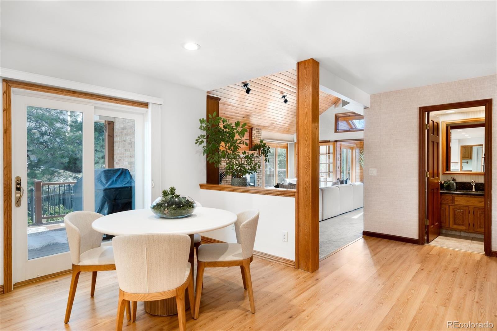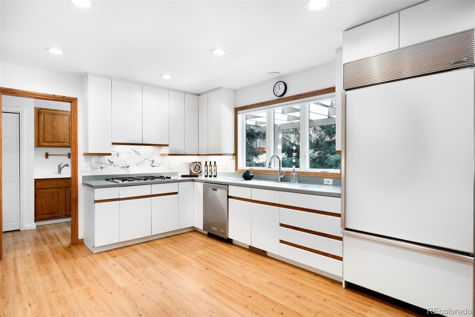 Set at the end of a quiet cul-de-sac backing to Lee Gulch and its integrated trail system, 1920 W. Arapahoe Road is surrounded by mature pines, offering a private setting with frequent wildlife sightings just minutes from downtown Littleton. Inside, generous proportions and natural light define the home, with large windows framing views of the surrounding landscape. Adjacent to the entry, the living and dining rooms create a welcoming sense of arrival, with the family room flowing into an office flanked by custom built-ins. Positioned just off the main living spaces, the kitchen connects to the dining room through a butler's pantry and opens to the family room, with both spaces offering direct access to two outdoor areas and the private, fully fenced backyard, creating an ideal layout for everyday living and entertaining. The family room, complete with a wet bar and gas fireplace, leads into the paneled sunroom and deck, extending the living space with views of Lee Gulch and its trails. Upstairs, the primary suite is spacious and well-appointed, featuring a five-piece bath and a walk-in closet. Three additional bedrooms and two full bathrooms complete the upper level, offering flexibility for family, guests, or work-from-home needs. The garden-level basement features a rec room with a fireplace, a three-quarter bathroom, and a fifth bedroom suited for guests, an office, or a fitness space. An expansive three-car garage completes the property, offering a rare opportunity to enjoy privacy and nature in the Lower Ridge neighborhood within minutes of downtown Littleton and its restaurants, boutiques, and coffee shops.
