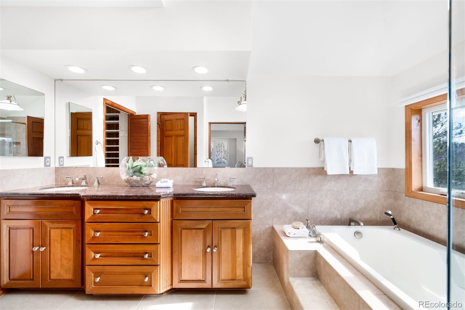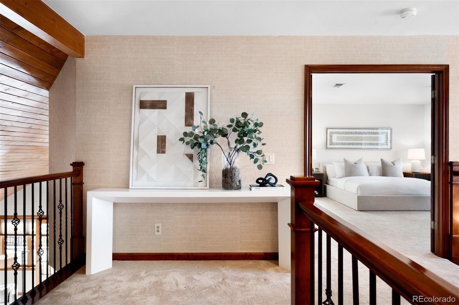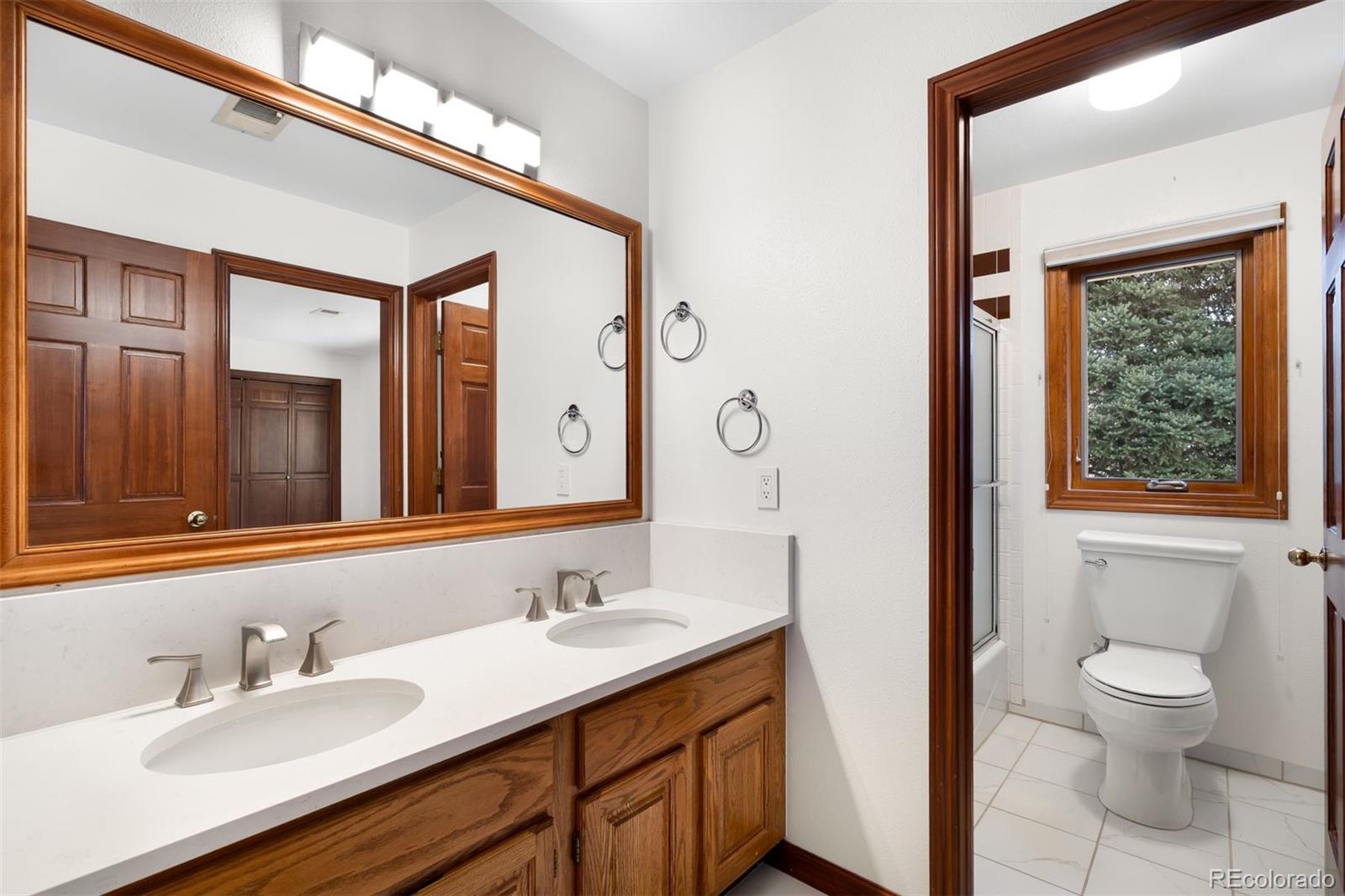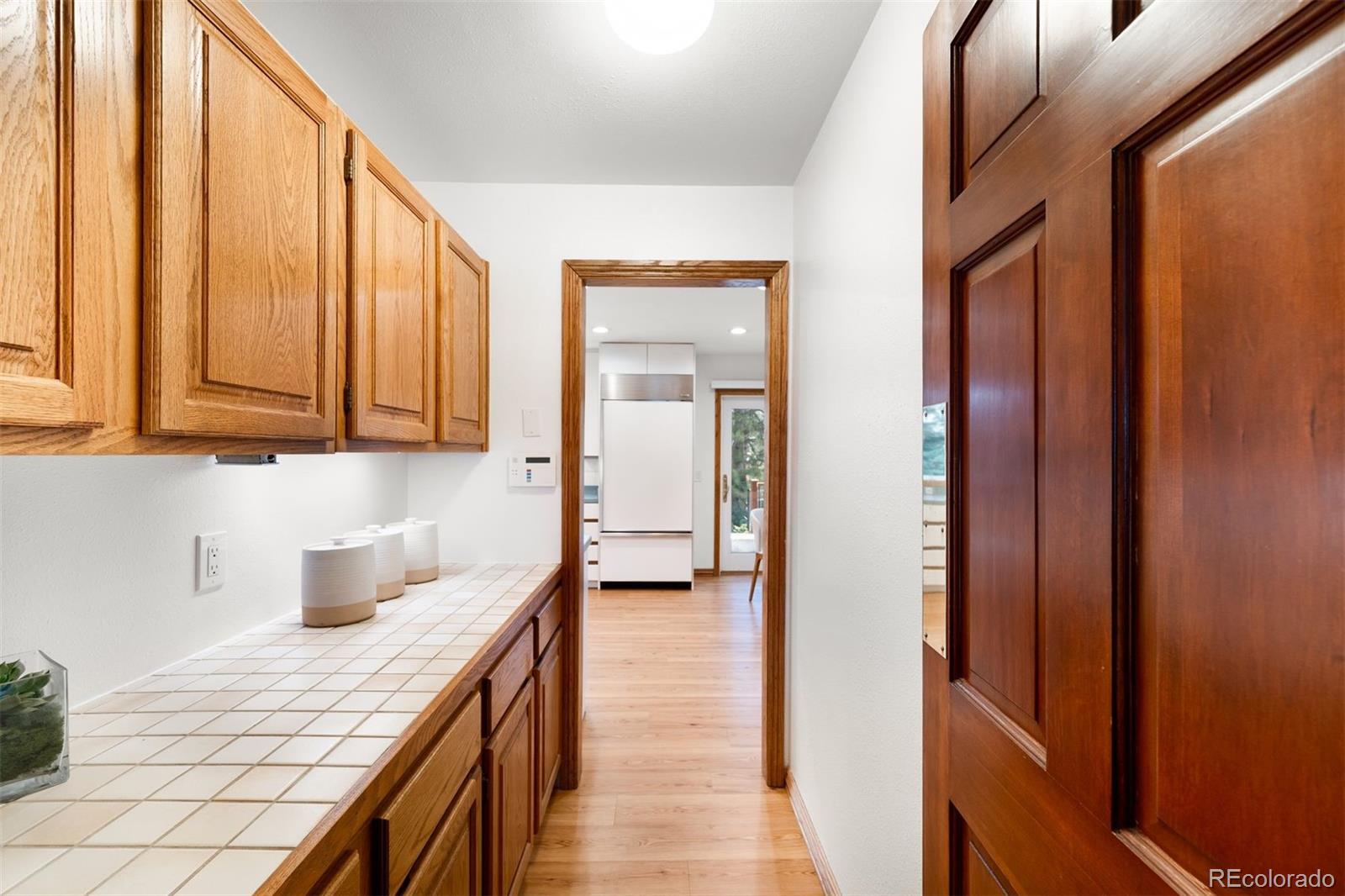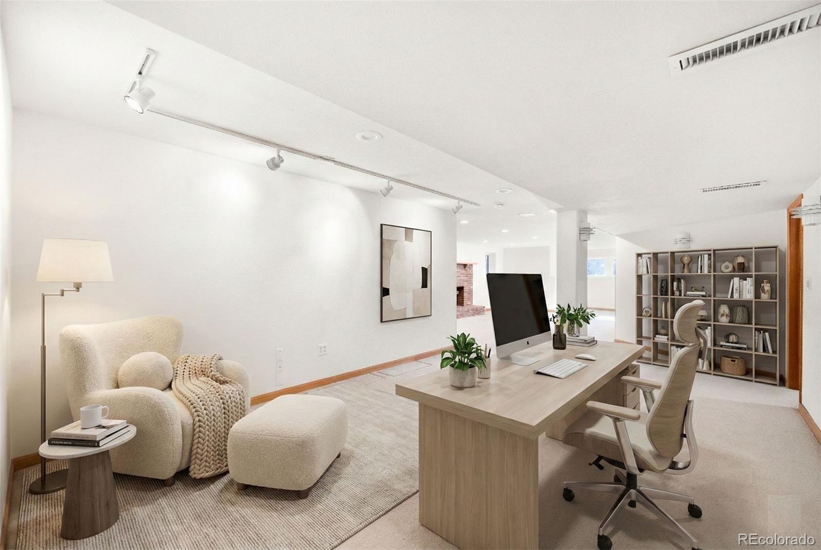 Set at the end of a quiet cul-de-sac backing to Lee Gulch and its integrated trail system, 1920 W. Arapahoe Road is surrounded by mature pines, offering a private setting with frequent wildlife sightings just minutes from downtown Littleton. Inside, generous proportions and natural light define the home, with large windows framing views of the surrounding landscape. Adjacent to the entry, the living and dining rooms create a welcoming sense of arrival, with the family room flowing into an office flanked by custom built-ins. Positioned just off the main living spaces, the kitchen connects to the dining room through a butler's pantry and opens to the family room, with both spaces offering direct access to two outdoor areas and the private, fully fenced backyard, creating an ideal layout for everyday living and entertaining. The family room, complete with a wet bar and gas fireplace, leads into the paneled sunroom and deck, extending the living space with views of Lee Gulch and its trails. Upstairs, the primary suite is spacious and well-appointed, featuring a five-piece bath and a walk-in closet. Three additional bedrooms and two full bathrooms complete the upper level, offering flexibility for family, guests, or work-from-home needs. The garden-level basement features a rec room with a fireplace, a three-quarter bathroom, and a fifth bedroom suited for guests, an office, or a fitness space. An expansive three-car garage completes the property, offering a rare opportunity to enjoy privacy and nature in the Lower Ridge neighborhood within minutes of downtown Littleton and its restaurants, boutiques, and coffee shops.