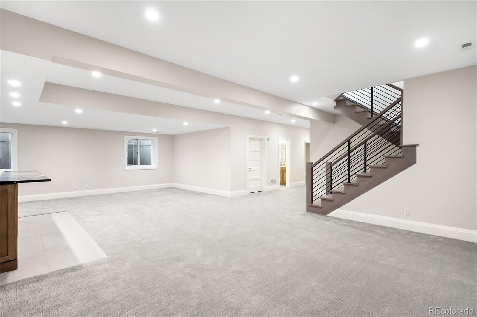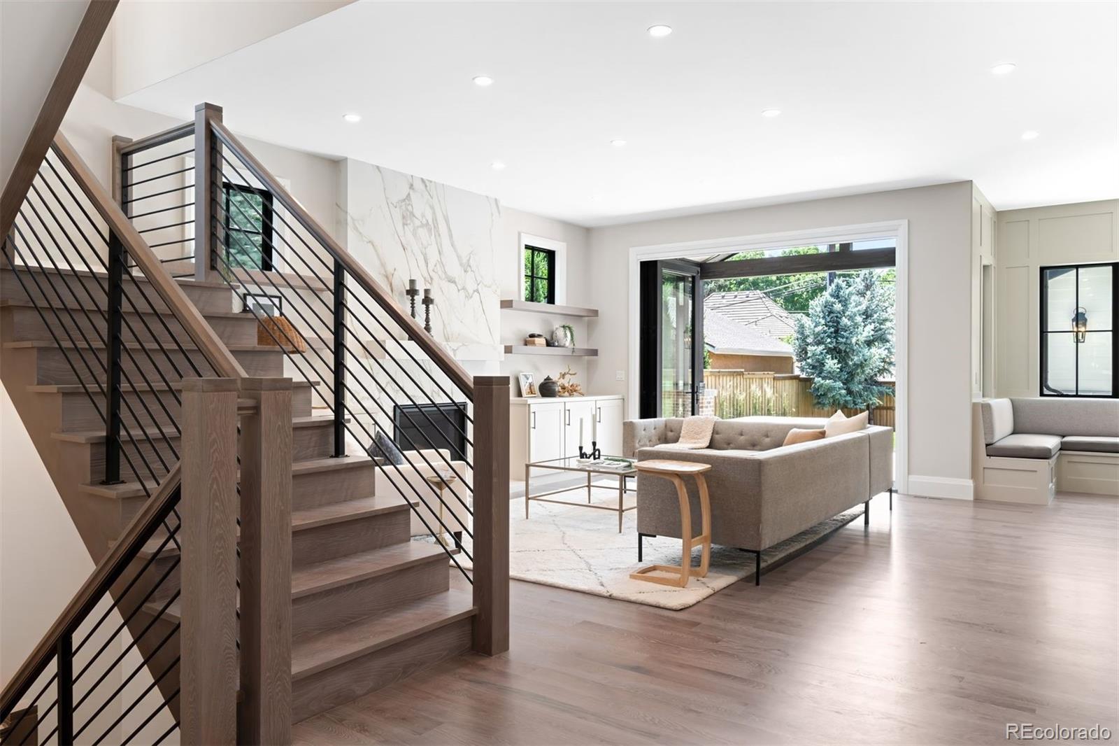 Positioned prominently on an east-facing lot in Observatory Park, this extraordinary new construction estate by Wiggs Custom Homes instantly impresses with over 6,100 square feet of innovative design and luxurious comfort. Custom site-finished white oak hardwood floors lead through an open floor plan perfectly crafted for elegant entertaining and effortless daily living. The formal dining room dazzles with statement lighting, while the expansive living room seamlessly transitions outdoors to a covered patio featuring a cozy built-in firepit and beautifully landscaped yard. The gourmet kitchen is a showstopper, featuring top-of-the-line Wolf & Sub-Zero appliances, chic textured tile, stunning quartz countertops, and sophisticated antique brass fixtures. Adjacent, a bright breakfast nook invites relaxed meals and intimate conversations. The main level also offers a stylish home office, a luxurious guest suite with a private bath, and a thoughtfully designed mudroom connecting to the attached two-car garage. Upstairs, unwind in the luxurious primary suite--a serene escape with a lavish five-piece bath showcasing a soaking tub, steam shower, glamorous gold Brizo fixtures, and a spacious walk-in closet. Three additional bedrooms, each with private baths, a flexible loft perfect for relaxation or inspiration, and a conveniently located laundry room complete the upper level. The fully finished lower level is your entertainment oasis, boasting an expansive recreation room with a sleek wet bar, a dedicated media room ideal for movie nights, and two versatile bedrooms perfect as guest rooms, home gym spaces, or additional offices. Ideally positioned near top-rated Denver-1 schools, vibrant parks, and urban conveniences, this Observatory Park home offers an unmatched lifestyle defined by modern luxury and effortless style.