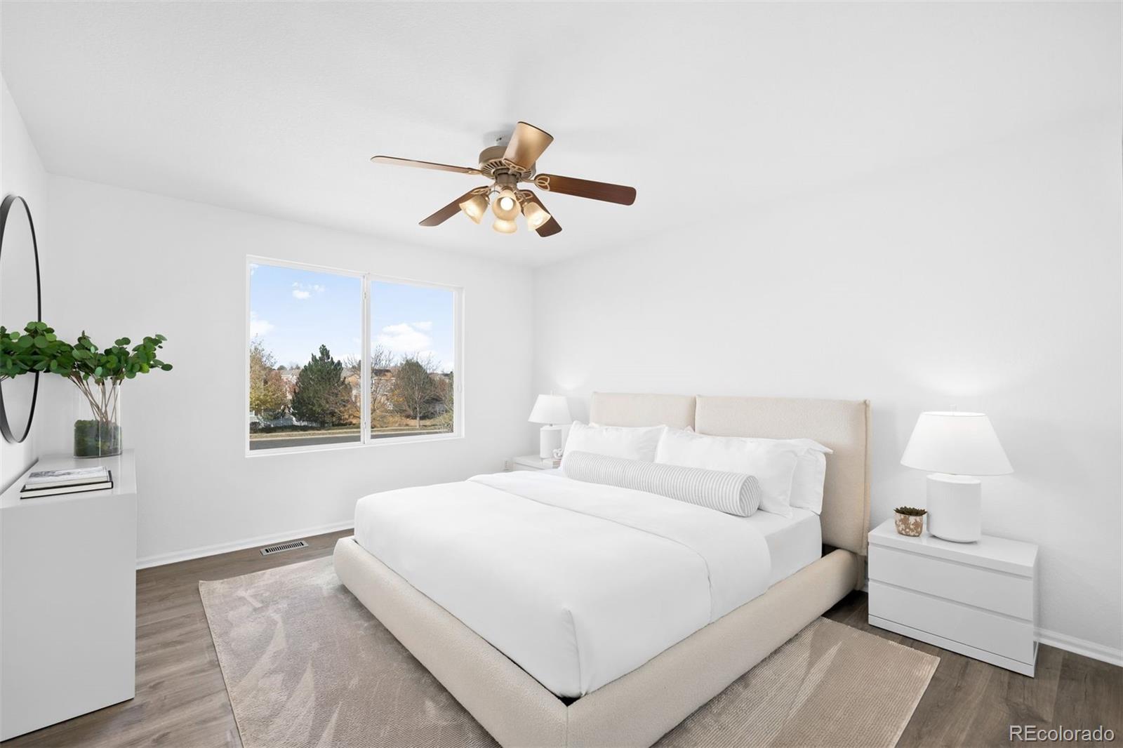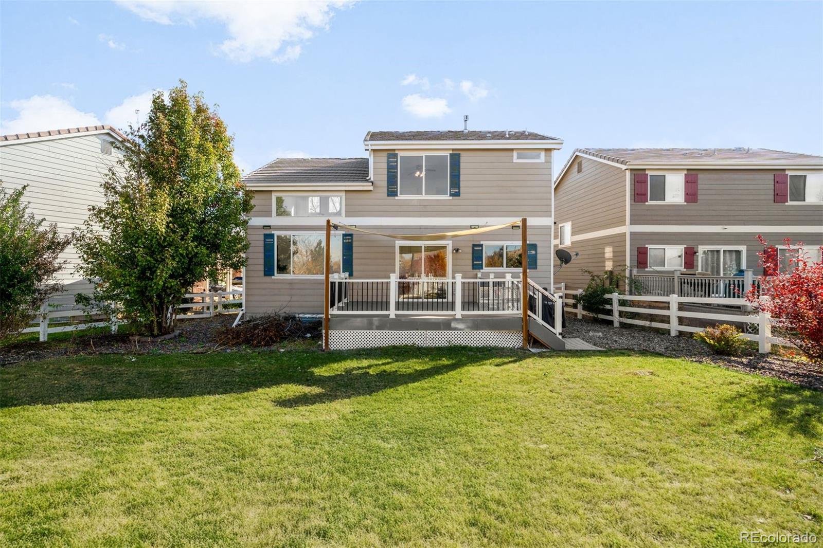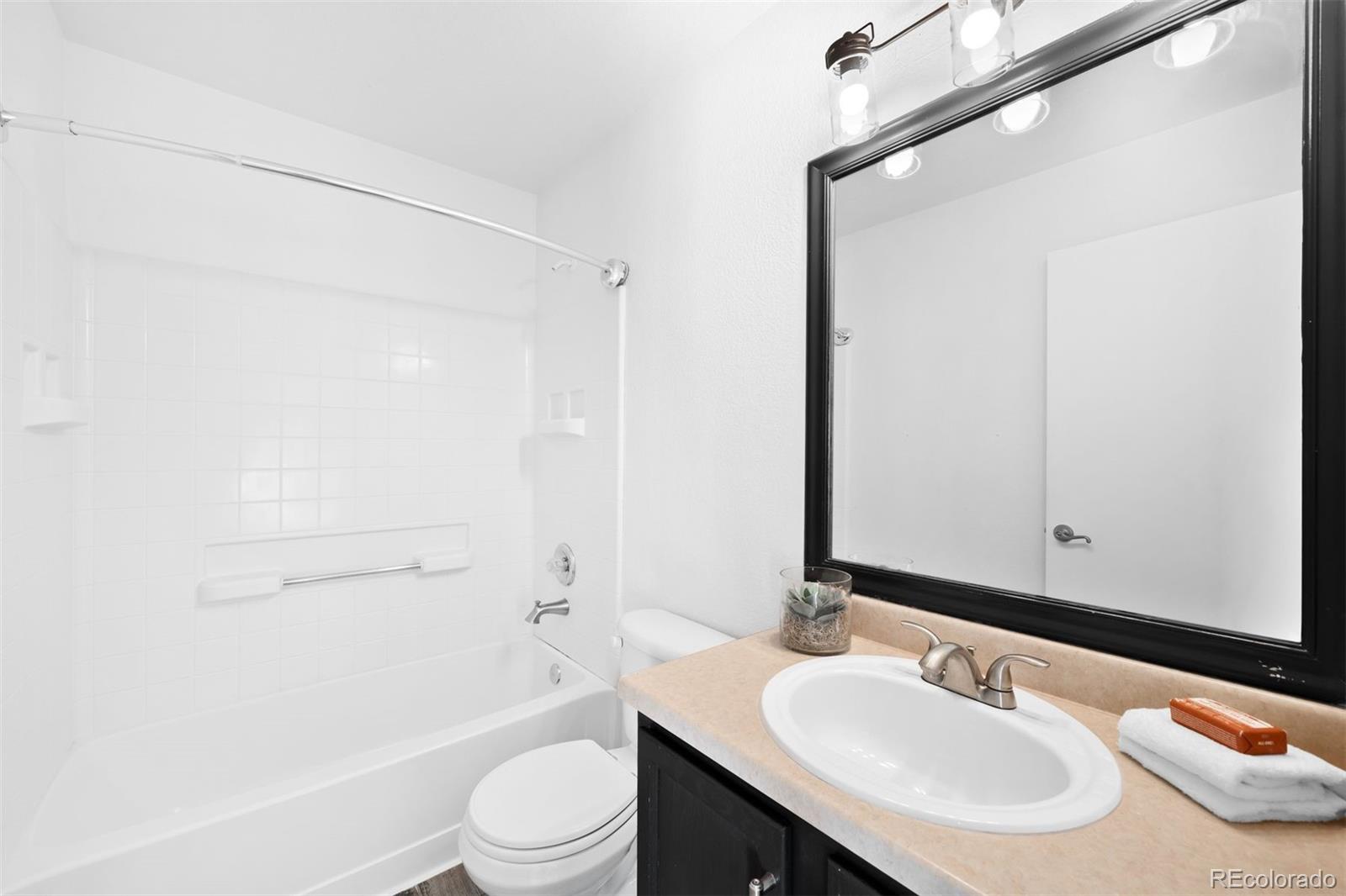 Nestled in the highly sought-after Murphy Creek community, this beautifully maintained two-story home blends modern comfort with everyday functionality. The bright and open main level welcomes you with soaring ceilings, large windows, and a seamless connection between the living, dining, and kitchen spaces. The updated kitchen features crisp white cabinetry, sleek black appliances, and ample counter space, while the adjoining dining area opens through sliding glass doors to the backyard, creating a smooth indoor-outdoor flow that's perfect for entertaining or relaxing. A convenient powder bath and laundry and mud room with direct access to the attached two-car garage complete the main level. Upstairs, the spacious primary suite offers a peaceful retreat with a large window, neutral finishes, and a generous walk-in closet. The en suite bath is light-filled and inviting, featuring dual mirrors, a soaking tub, and built-in shelving. Two additional bedrooms share a full bath, offering flexible options for guest rooms, a home office, or a gym. The finished basement adds valuable living space with a versatile recreation area, a private guest suite, and a three-quarter bath, ideal for visitors or extended stays. Perfectly situated near parks, the renowned Murphy Creek Golf Course, and community amenities, this home enjoys close proximity to top-rated schools, shopping, and dining. Commuting is effortless with quick access to E-470, DIA, and Buckley Space Force Base. Step outside your front door to explore walking trails, open green spaces, and neighborhood amenities including a clubhouse, pool, tennis courts, playground, and on-site restaurant - all within a quiet and friendly setting designed for an active Colorado lifestyle.