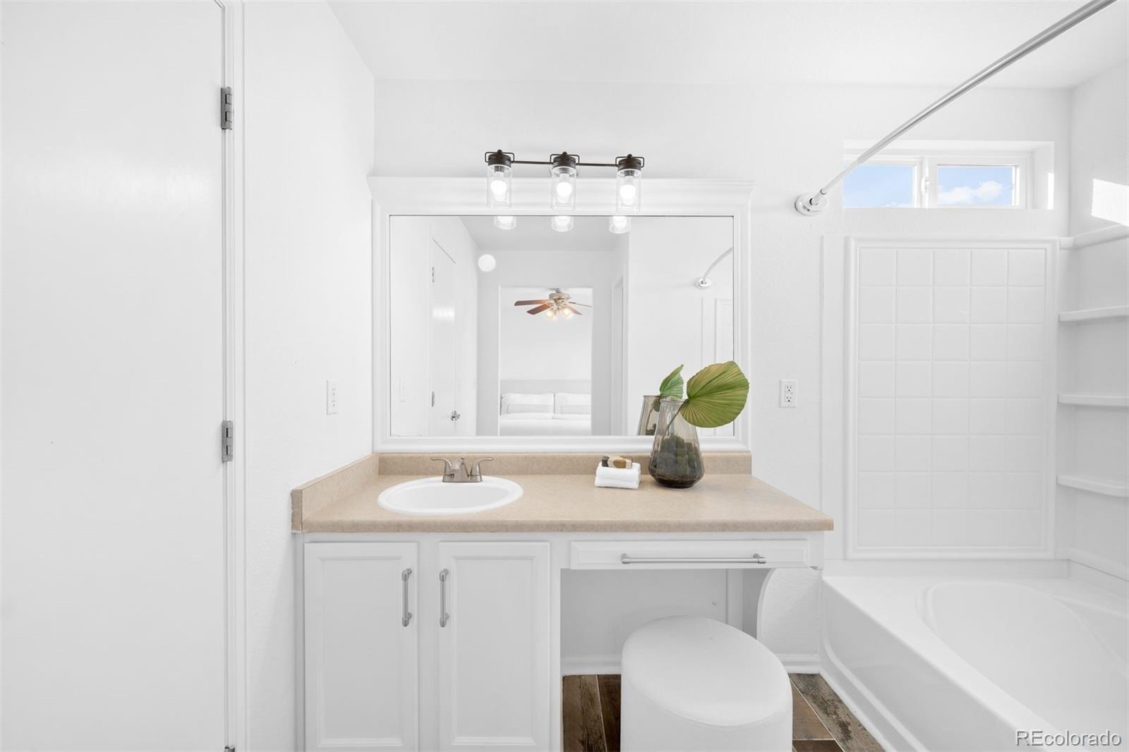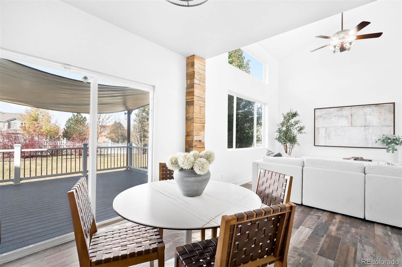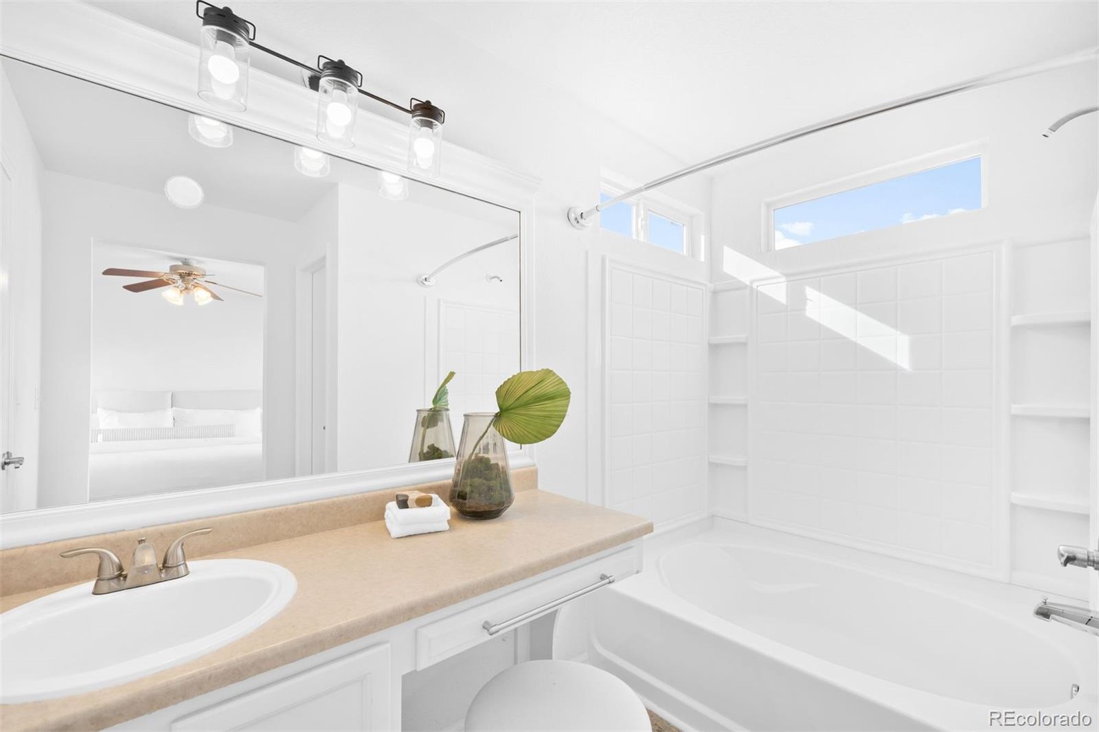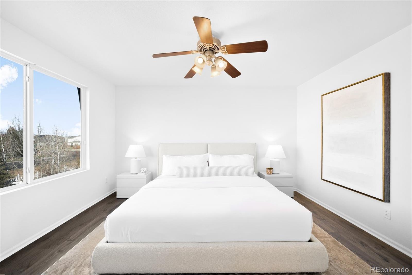 Nestled in the highly sought-after Murphy Creek community, this beautifully maintained two-story home blends modern comfort with everyday functionality. The bright and open main level welcomes you with soaring ceilings, large windows, and a seamless connection between the living, dining, and kitchen spaces. The updated kitchen features crisp white cabinetry, sleek black appliances, and ample counter space, while the adjoining dining area opens through sliding glass doors to the backyard, creating a smooth indoor-outdoor flow that's perfect for entertaining or relaxing. A convenient powder bath and laundry and mud room with direct access to the attached two-car garage complete the main level. Upstairs, the spacious primary suite offers a peaceful retreat with a large window, neutral finishes, and a generous walk-in closet. The en suite bath is light-filled and inviting, featuring dual mirrors, a soaking tub, and built-in shelving. Two additional bedrooms share a full bath, offering flexible options for guest rooms, a home office, or a gym. The finished basement adds valuable living space with a versatile recreation area, a private guest suite, and a three-quarter bath, ideal for visitors or extended stays. Perfectly situated near parks, the renowned Murphy Creek Golf Course, and community amenities, this home enjoys close proximity to top-rated schools, shopping, and dining. Commuting is effortless with quick access to E-470, DIA, and Buckley Space Force Base. Step outside your front door to explore walking trails, open green spaces, and neighborhood amenities including a clubhouse, pool, tennis courts, playground, and on-site restaurant - all within a quiet and friendly setting designed for an active Colorado lifestyle.