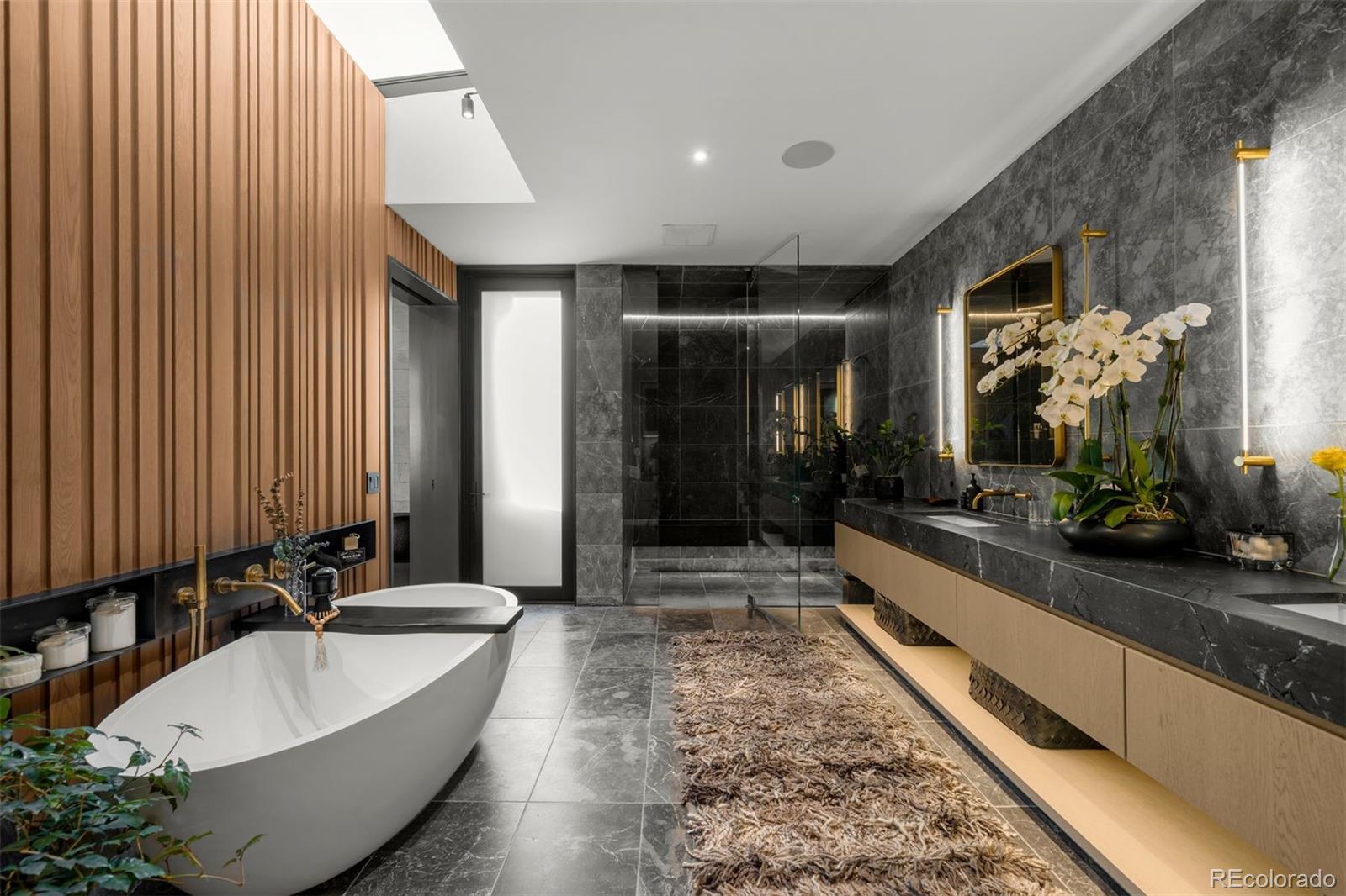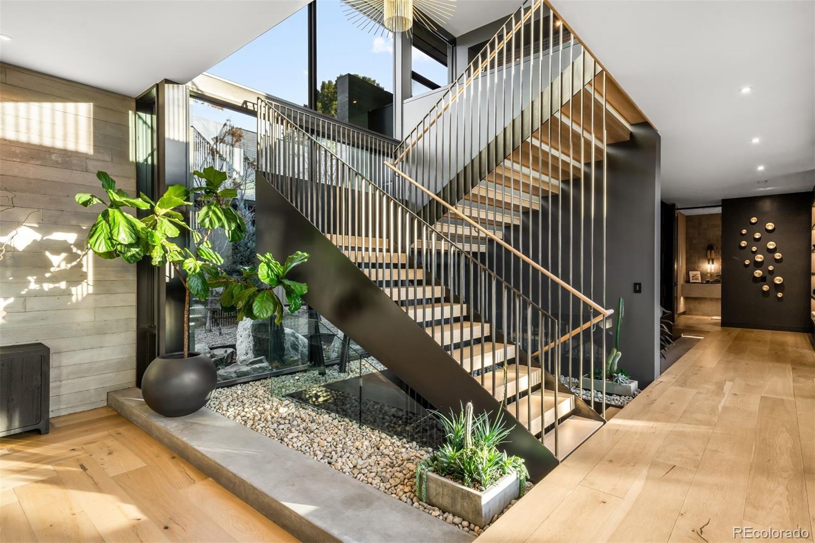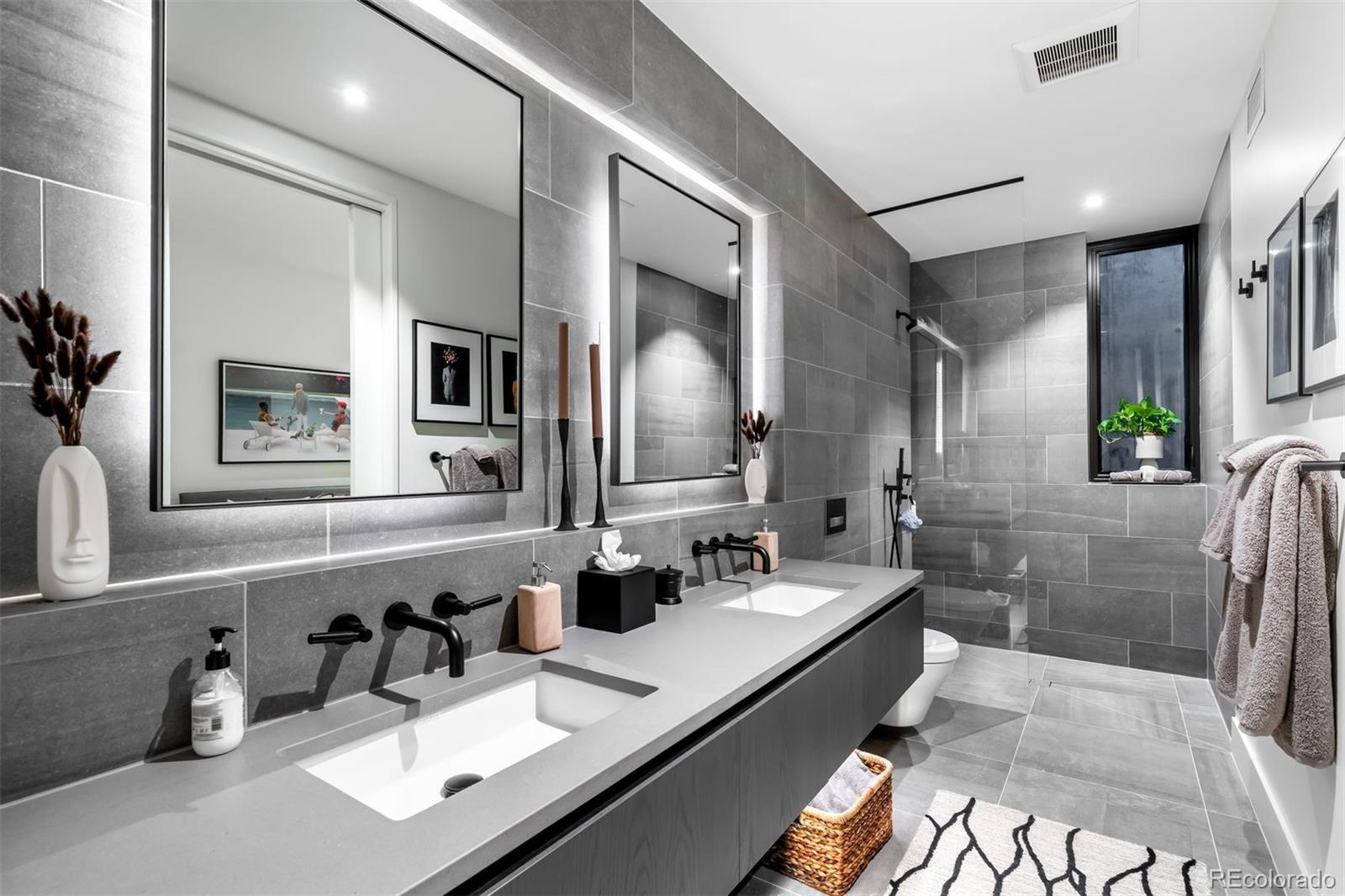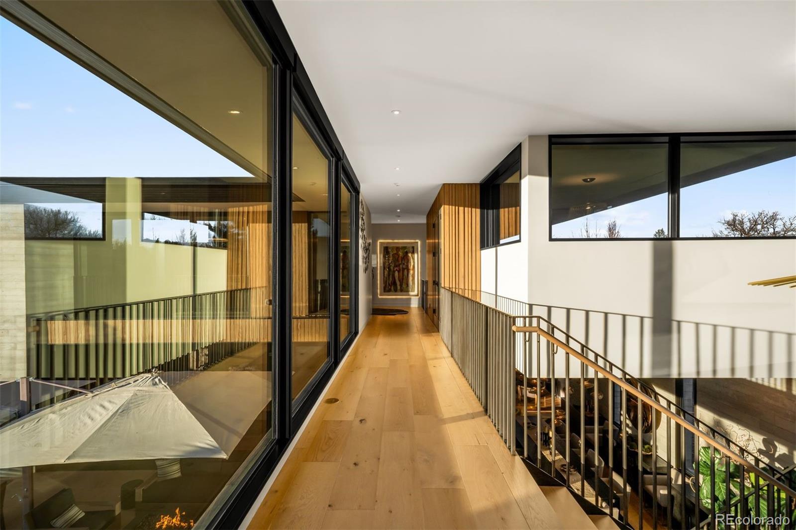 Behind the private gates of Cedar Estates, this striking, architecturally inspired residence is a thoughtful composition of steel, glass, and wood. Expansive sightlines unfold throughout, enhanced by generous ceiling heights and walls of glass that create an intimate and seamless connection between refined interiors and impeccably designed patios and courtyards. At the heart of the home, the main level centers around a chef-caliber kitchen featuring Wolf appliances, a Caesarstone waterfall island paired with a live-edge slab table, an oversized pantry, and an integrated wet bar and coffee nook. A full wall of sliding doors opens to a resort-style outdoor setting with a sleek pool and spa, outdoor kitchen, and multiple heated seating areas arranged around sculptural fire elements, allowing entertaining to flow effortlessly between indoor and outdoor spaces. Adjacent living and dining areas are anchored by a sculptural Bocci light installation, integrated wine storage, and a gas fireplace. The upper level serves as a private retreat, highlighted by a secluded primary suite with a spa-inspired bath featuring radiant heated floors, a steam shower, and a custom walk-in closet with laundry. Two additional spacious en suite bedrooms and a loft-style office complete the level. The fully finished lower level expands the home's livability with a media room, game room, wellness suite with gym and Finnleo infrared sauna, and two private guest suites. All levels are seamlessly connected by a private elevator. Outdoors, a pool and spa are complemented by covered patios, two fire pits, an outdoor kitchen, and serene landscaping, creating a true sanctuary just steps from the heart of Cherry Creek.