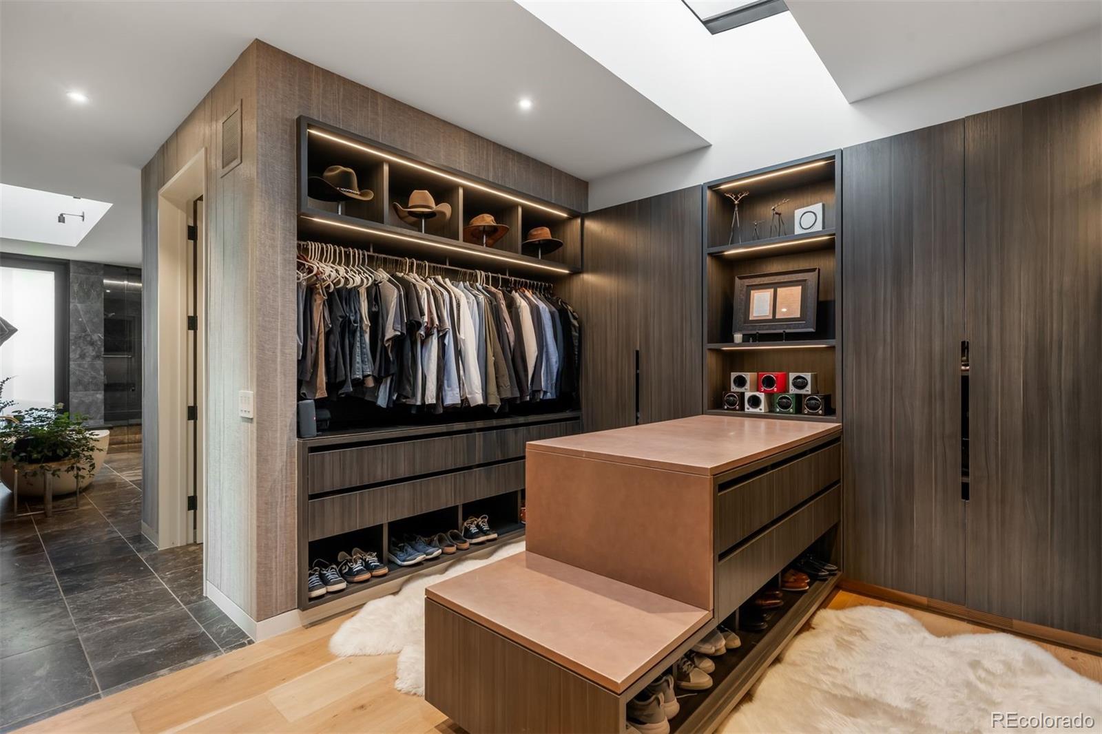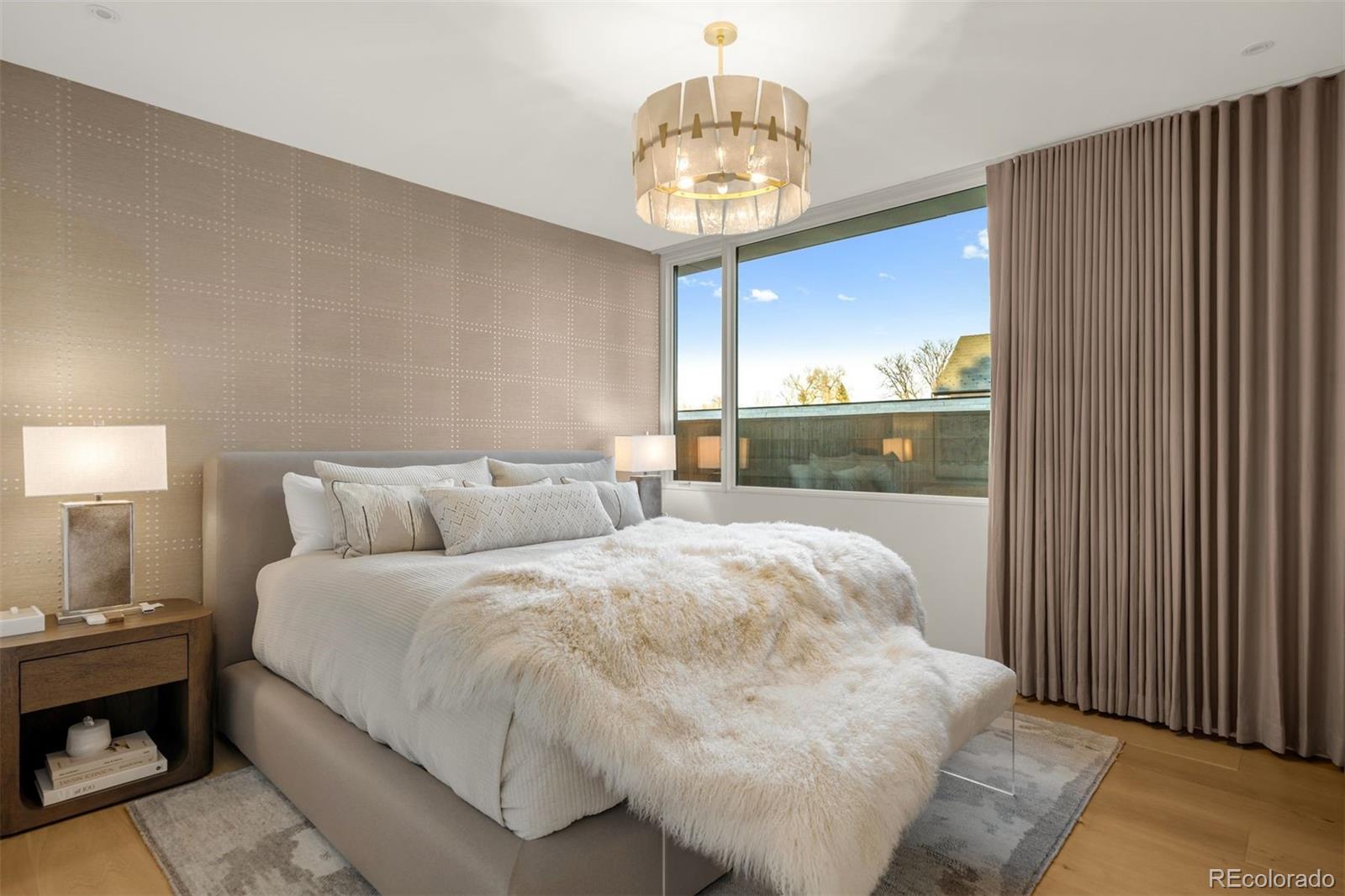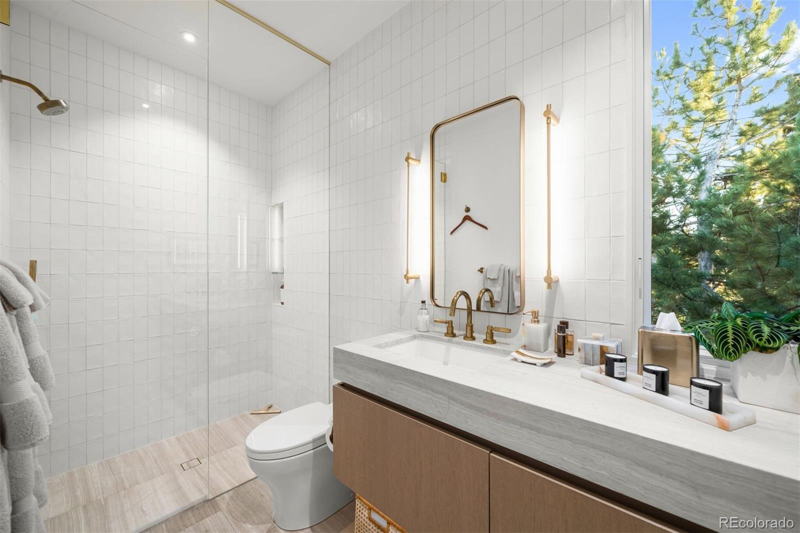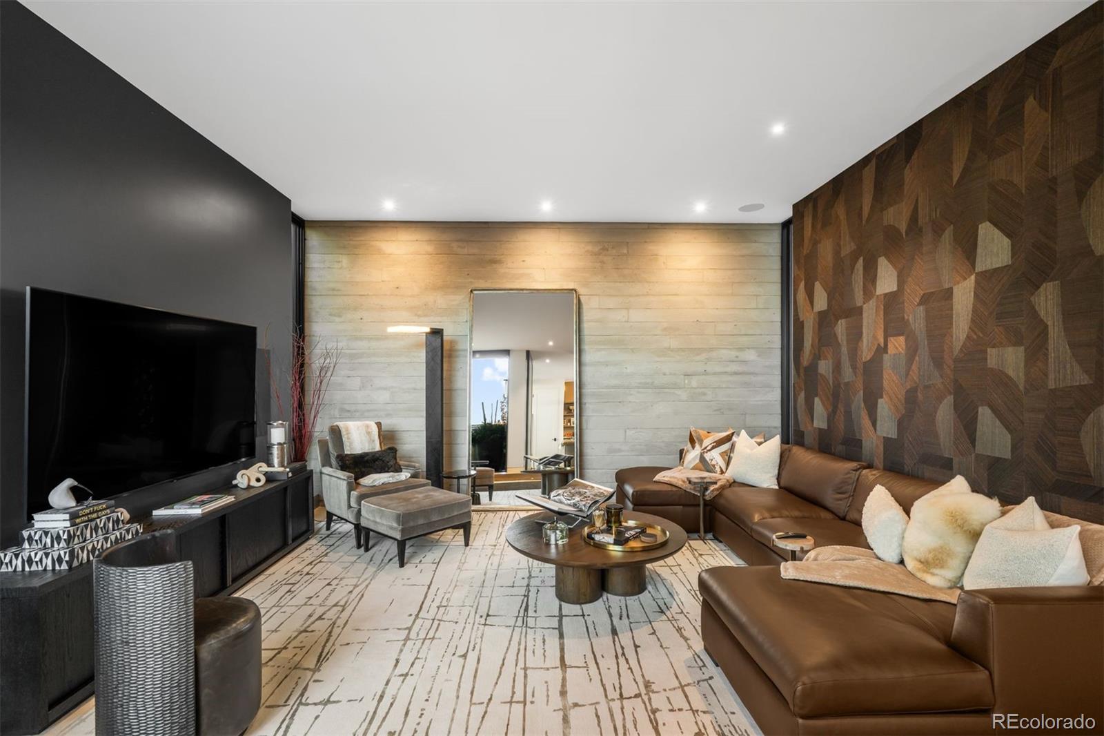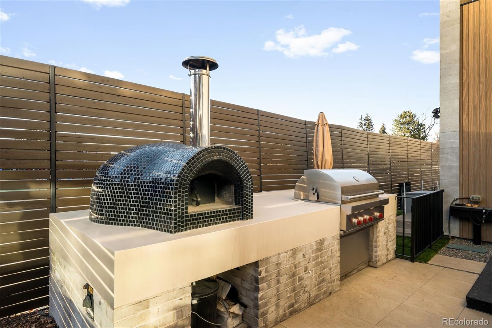 Behind the private gates of Cedar Estates, this striking, architecturally inspired residence is a thoughtful composition of steel, glass, and wood. Expansive sightlines unfold throughout, enhanced by generous ceiling heights and walls of glass that create an intimate and seamless connection between refined interiors and impeccably designed patios and courtyards. At the heart of the home, the main level centers around a chef-caliber kitchen featuring Wolf appliances, a Caesarstone waterfall island paired with a live-edge slab table, an oversized pantry, and an integrated wet bar and coffee nook. A full wall of sliding doors opens to a resort-style outdoor setting with a sleek pool and spa, outdoor kitchen, and multiple heated seating areas arranged around sculptural fire elements, allowing entertaining to flow effortlessly between indoor and outdoor spaces. Adjacent living and dining areas are anchored by a sculptural Bocci light installation, integrated wine storage, and a gas fireplace. The upper level serves as a private retreat, highlighted by a secluded primary suite with a spa-inspired bath featuring radiant heated floors, a steam shower, and a custom walk-in closet with laundry. Two additional spacious en suite bedrooms and a loft-style office complete the level. The fully finished lower level expands the home's livability with a media room, game room, wellness suite with gym and Finnleo infrared sauna, and two private guest suites. All levels are seamlessly connected by a private elevator. Outdoors, a pool and spa are complemented by covered patios, two fire pits, an outdoor kitchen, and serene landscaping, creating a true sanctuary just steps from the heart of Cherry Creek.