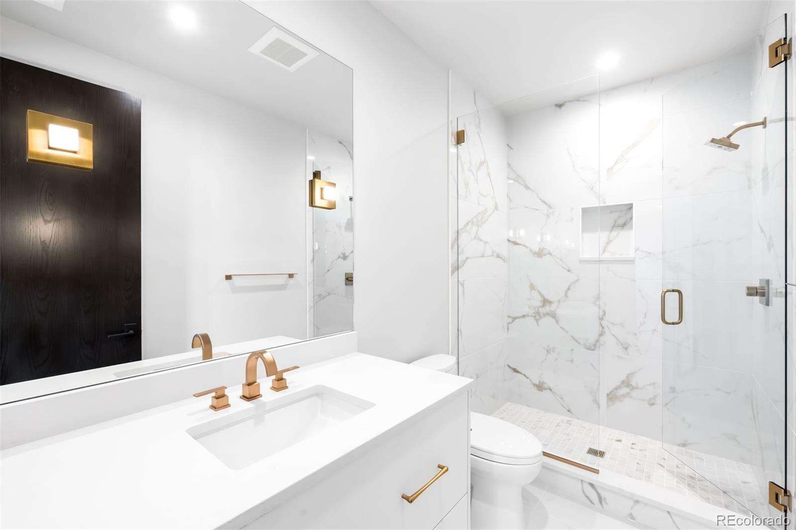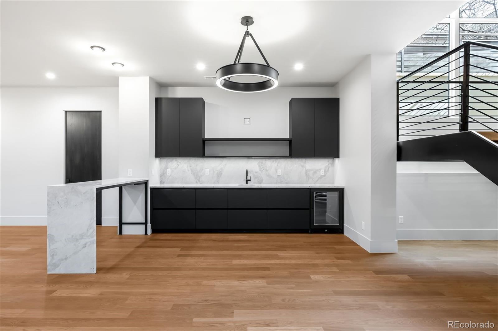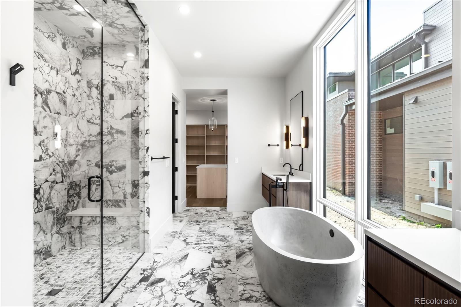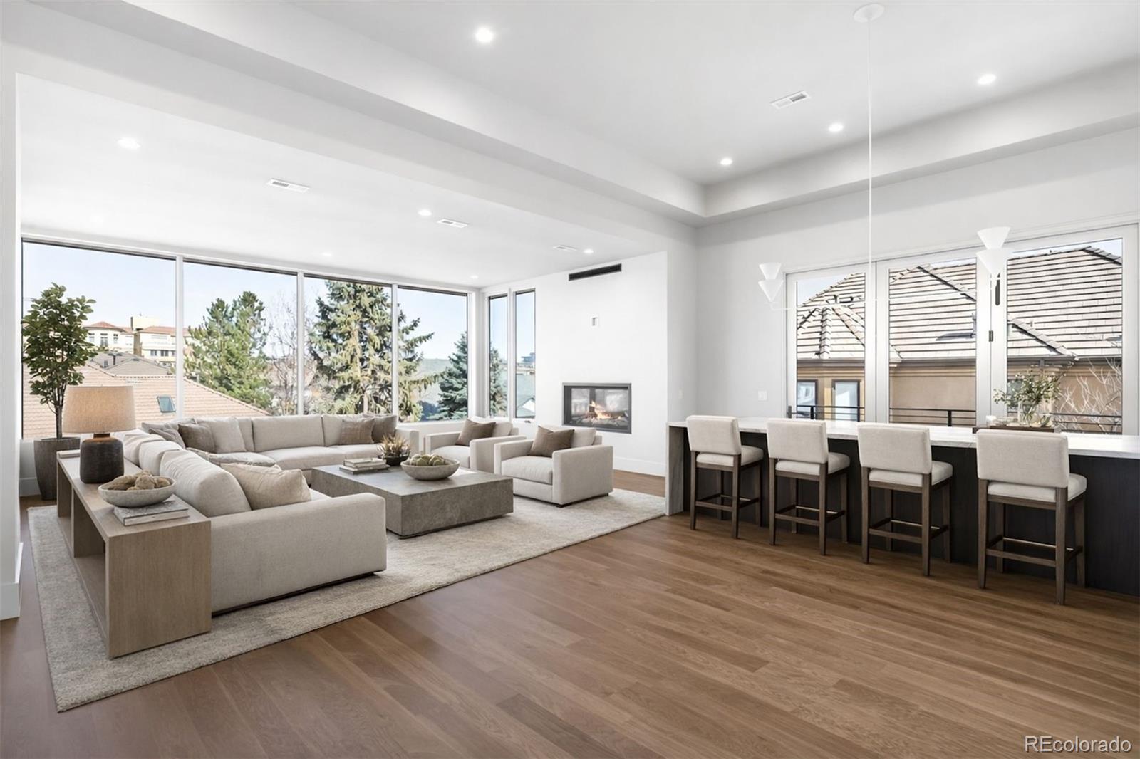 Positioned on a rare quarter-acre site in the heart of Cherry Creek, this newly completed contemporary residence delivers 9,900 square feet of thoughtfully designed living space defined by architectural precision, exceptional materials, and seamless indoor-outdoor living. A dramatic entryway introduces expansive interiors filled with natural light, soaring ceilings, and wide-plank flooring. The main living space is anchored by a striking fireplace clad in leathered Silver Brown Waved marble and framed by folding Nano doors that open to the covered patio, outdoor kitchen, private pool, and landscaped grounds, creating an effortless connection between interior and exterior spaces. At the center of the home, the chef's kitchen blends performance and design with custom Italian cabinetry, Gaggenau appliances, a honed soapstone island, and a fully equipped back kitchen and walk-in pantry. Privately positioned in its own wing, the main level primary suite offers a tranquil retreat with a fireplace, spa-inspired bath with soaking tub and glass-enclosed shower, and a custom walk-in closet. A second main floor primary suite located on the south side of the home offers additional flexibility for guests or multigenerational living. Upstairs, three spacious bedrooms each feature en-suite baths, while a recreation lounge with a wet bar opens to a private terrace designed for elevated entertaining. The lower level is dedicated to leisure and wellness with a large gathering space, wet bar finished in Matarazzo Dolomite, fitness studio, game room ideal for a golf simulator or theater, and a secluded guest suite. Additional highlights include a glass-enclosed wine display, elevator, and a finished four-car tandem garage. Located moments from Cherry Creek North's premier dining and boutiques, and within the Cory Merrill school district, this residence represents a rare opportunity to own a newly built architectural home in one of Denver's most sought-after neighborhoods.
