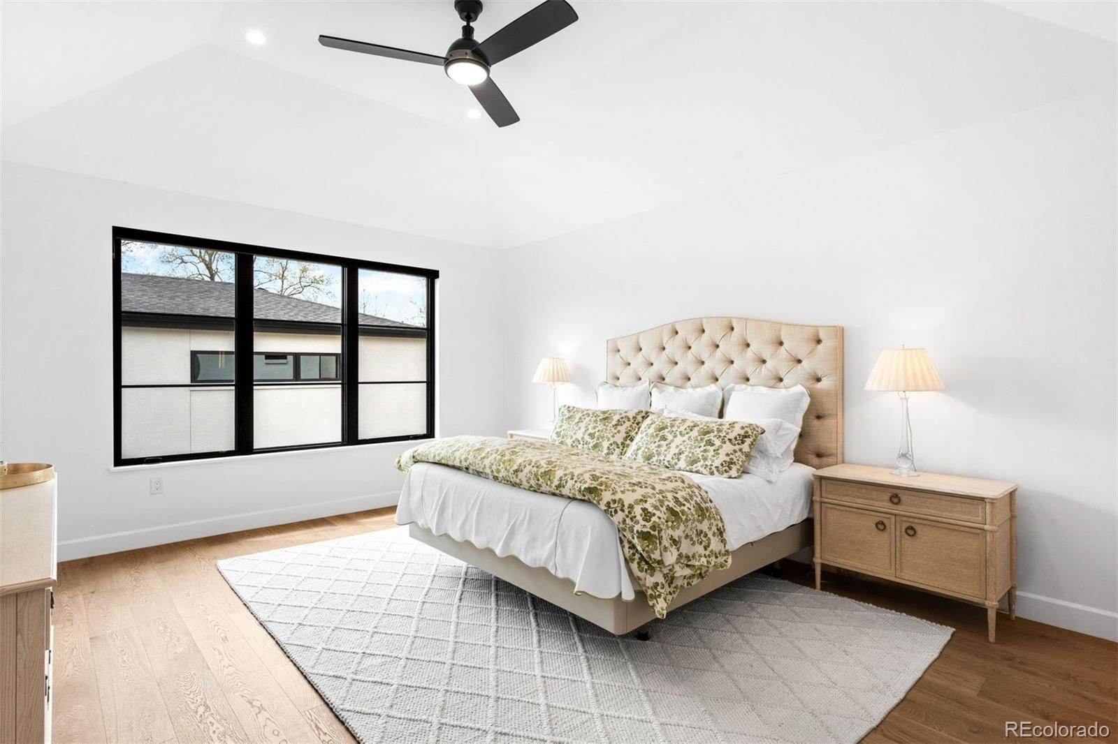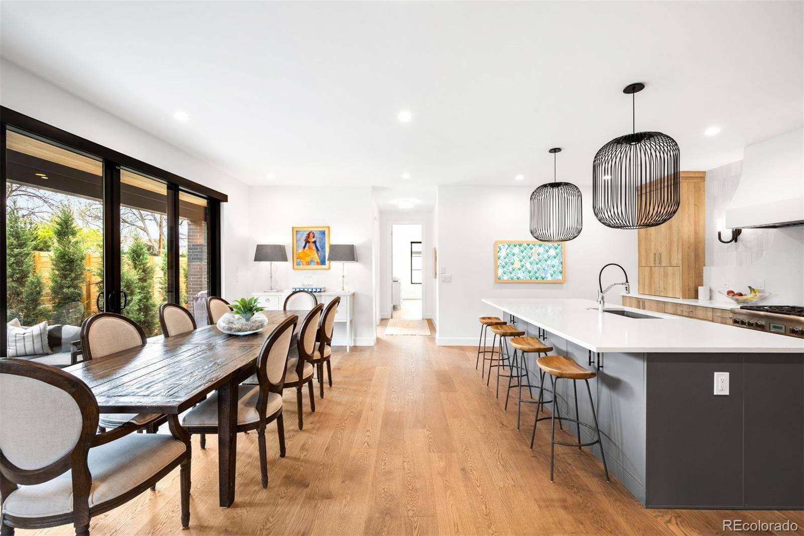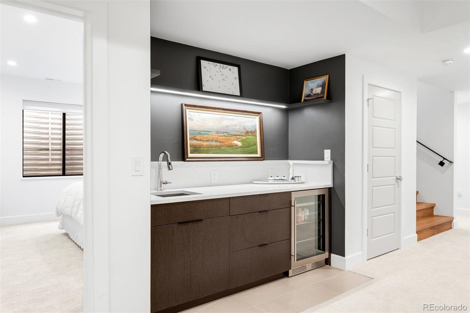 Built by Smith & Meade in 2024, this exceptional Observatory Park residence blends modern architecture with elevated design, thoughtfully crafted for both everyday living and effortless entertaining. A light-filled interior features soaring ceilings, wide-plank hardwood floors, and a seamless connection between indoor and outdoor spaces. At the heart of the home, the chef's kitchen impresses with premium Thermador and Energy Star appliances, a dual fuel range, an expansive island, a walk-in pantry, and a fully equipped back kitchen featuring an additional oven and a built-in beverage tap system. The adjacent dining area opens through sliding doors to a private backyard, creating an ideal setting for indoor-outdoor living. The living room is anchored by a sleek fireplace and enhanced by custom smart shades. A main-level office and mud room with built-ins provide everyday functionality and access to the EV-ready three-car garage. The main floor primary suite is a serene retreat with a spa-inspired bath featuring a soaking tub, glass-enclosed shower, and a generous walk-in closet, along with a dedicated laundry area. Upstairs, three en-suite bedrooms provide comfort and privacy, along with a full laundry room complete with a utility sink. The finished lower level includes a spacious rec room with a wet bar, media room, two additional bedrooms, and a private gym. Custom cabinetry is thoughtfully integrated throughout the home, featuring pull-out drawers and built-in shelving and dividers that enhance both function and design. Designed for comfort and efficiency, the home includes an Energy Recovery Ventilator, two-stage variable speed furnace and A/C, tankless water heater with recirculation, and whole-home water purification system. Ideally located across from E. Harvard Gulch Trail and moments from McWilliams and Observatory Parks, with easy access to the University of Denver, Wellshire Golf Course, Colorado Boulevard dining, I-25, downtown Denver, and the mountains.