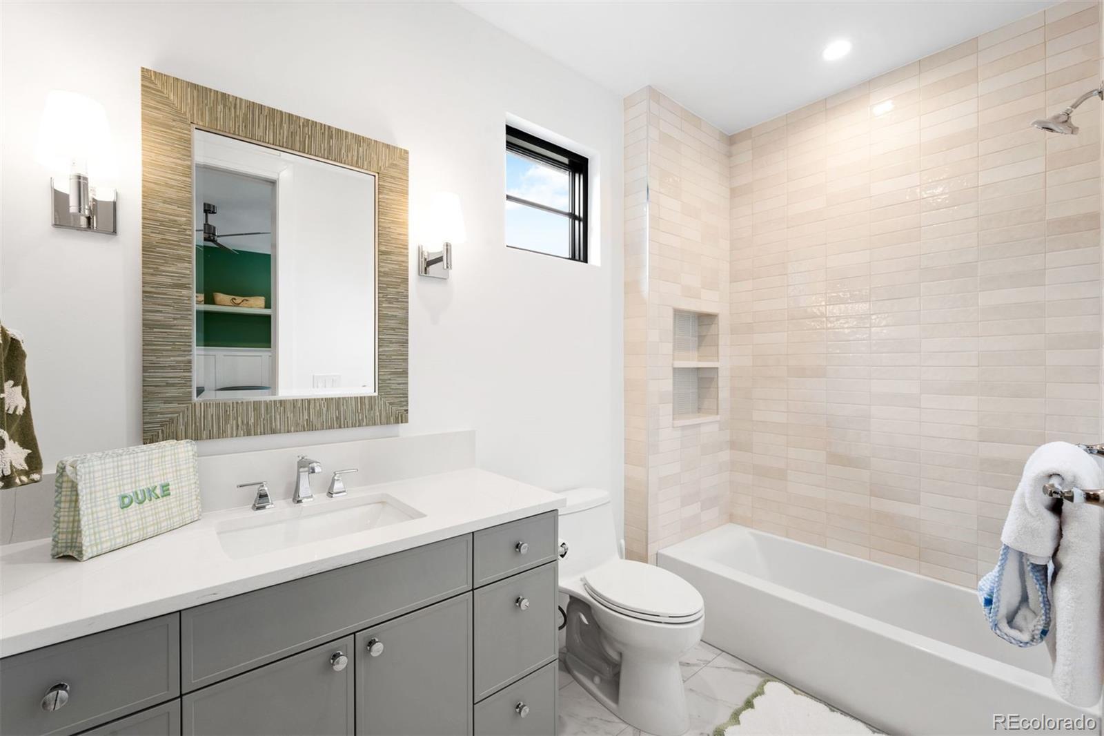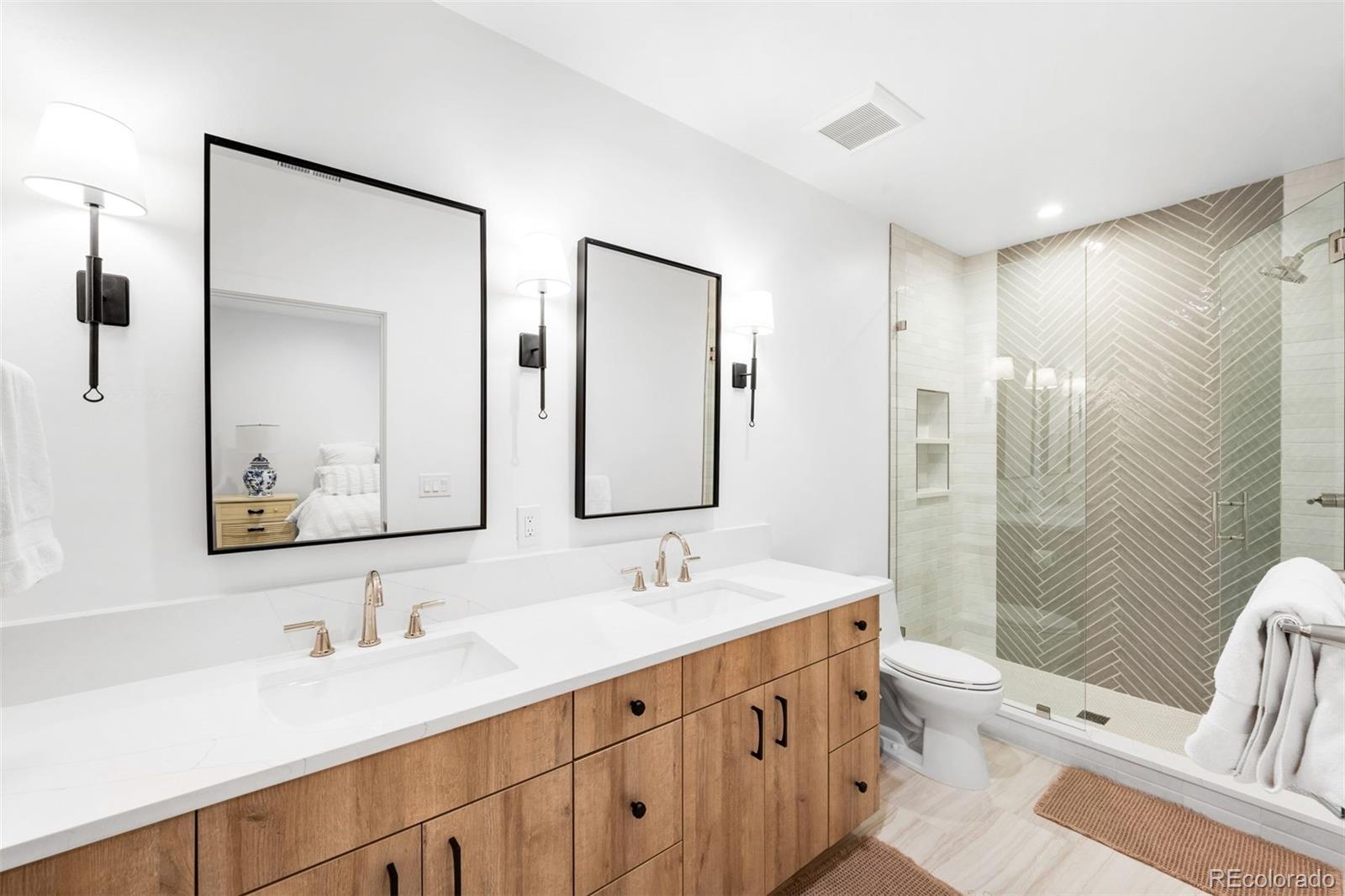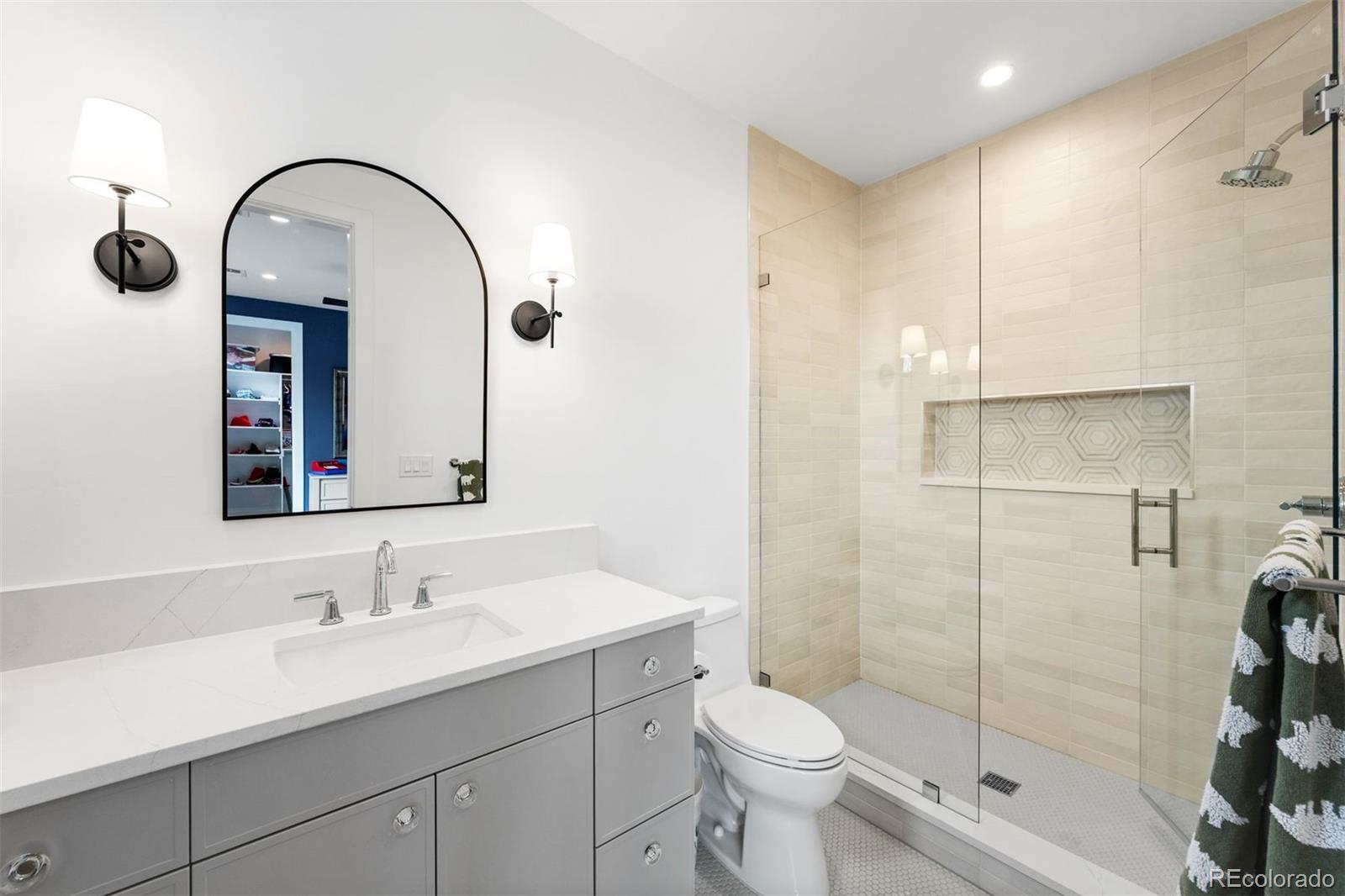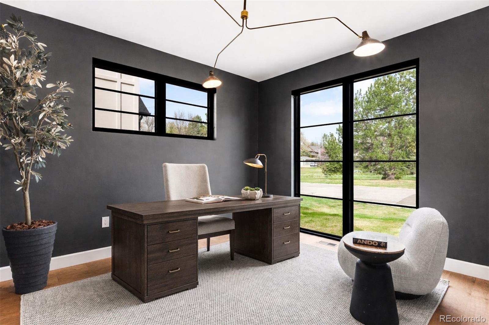 Built by Smith & Meade in 2024, this exceptional Observatory Park residence blends modern architecture with elevated design, thoughtfully crafted for both everyday living and effortless entertaining. A light-filled interior features soaring ceilings, wide-plank hardwood floors, and a seamless connection between indoor and outdoor spaces. At the heart of the home, the chef's kitchen impresses with premium Thermador and Energy Star appliances, a dual fuel range, an expansive island, a walk-in pantry, and a fully equipped back kitchen featuring an additional oven and a built-in beverage tap system. The adjacent dining area opens through sliding doors to a private backyard, creating an ideal setting for indoor-outdoor living. The living room is anchored by a sleek fireplace and enhanced by custom smart shades. A main-level office and mud room with built-ins provide everyday functionality and access to the EV-ready three-car garage. The main floor primary suite is a serene retreat with a spa-inspired bath featuring a soaking tub, glass-enclosed shower, and a generous walk-in closet, along with a dedicated laundry area. Upstairs, three en-suite bedrooms provide comfort and privacy, along with a full laundry room complete with a utility sink. The finished lower level includes a spacious rec room with a wet bar, media room, two additional bedrooms, and a private gym. Custom cabinetry is thoughtfully integrated throughout the home, featuring pull-out drawers and built-in shelving and dividers that enhance both function and design. Designed for comfort and efficiency, the home includes an Energy Recovery Ventilator, two-stage variable speed furnace and A/C, tankless water heater with recirculation, and whole-home water purification system. Ideally located across from E. Harvard Gulch Trail and moments from McWilliams and Observatory Parks, with easy access to the University of Denver, Wellshire Golf Course, Colorado Boulevard dining, I-25, downtown Denver, and the mountains.