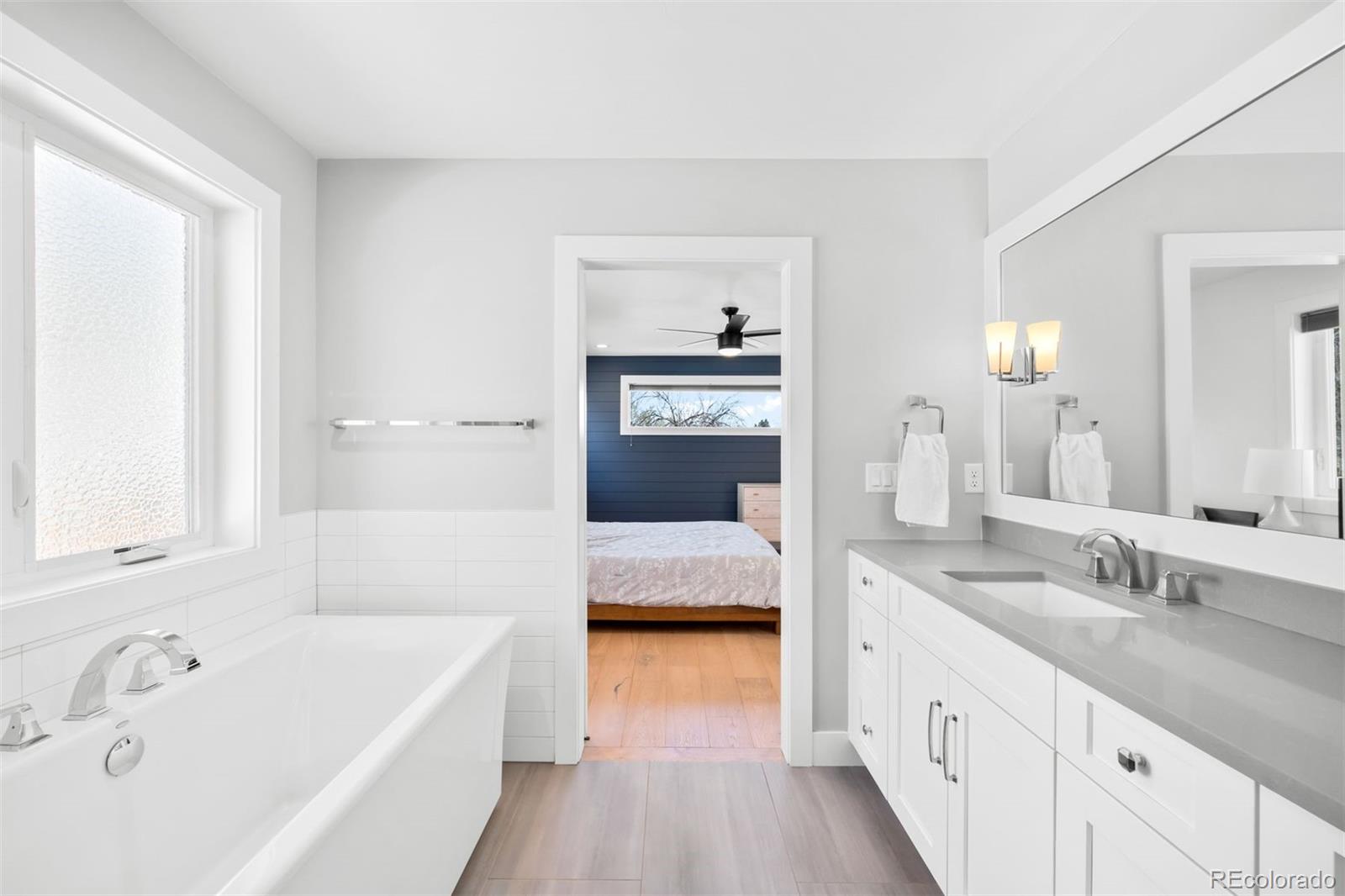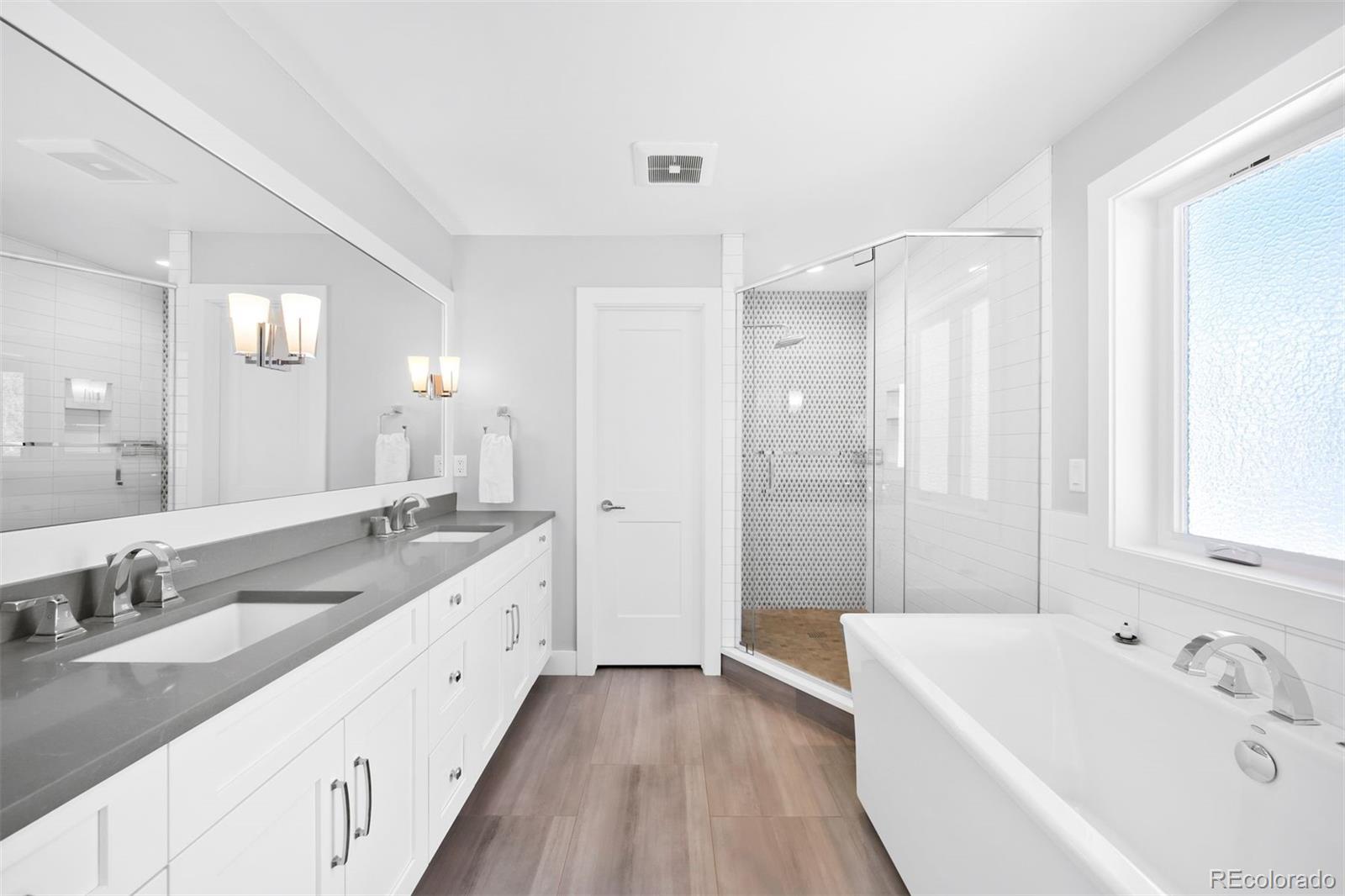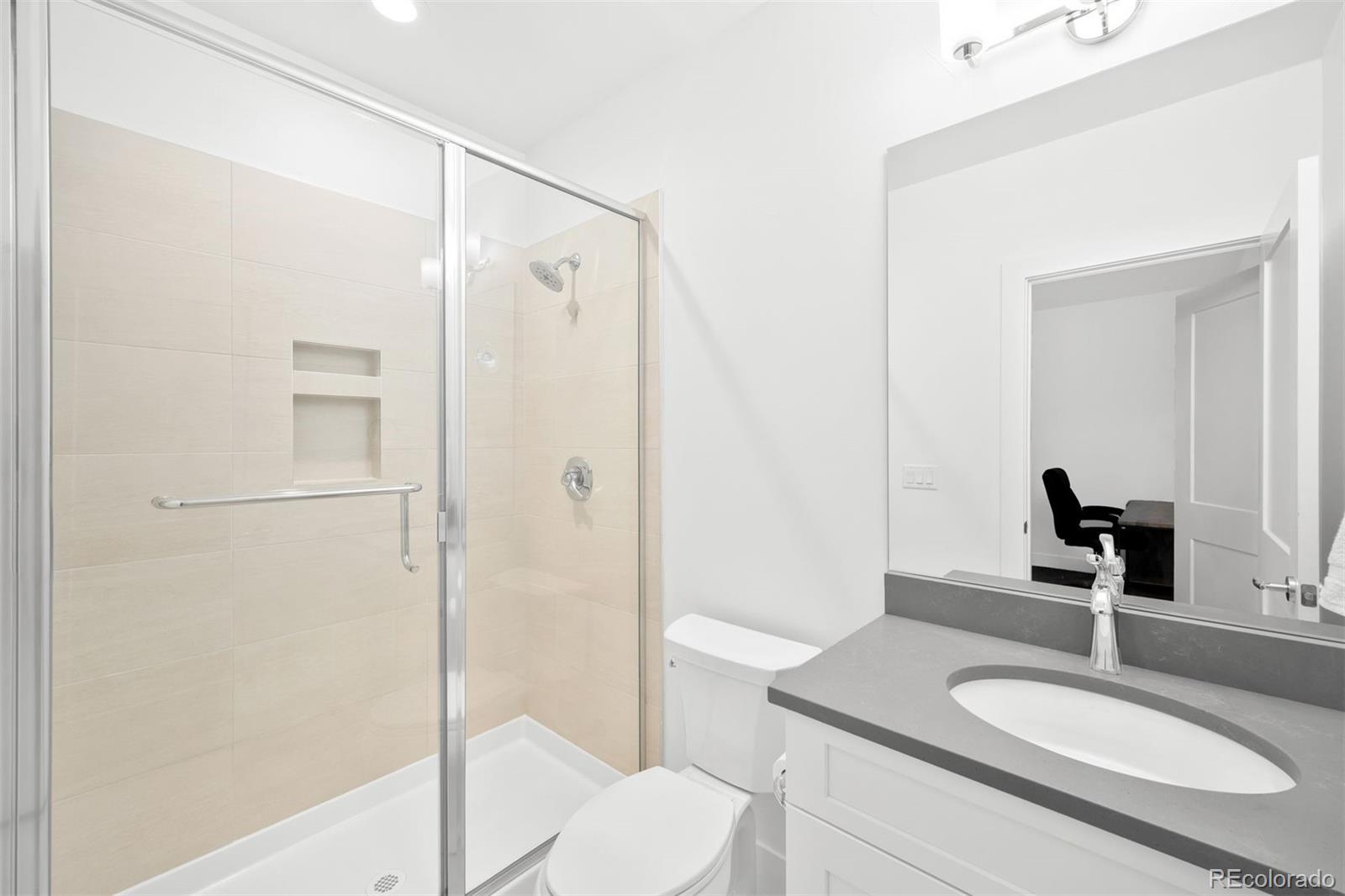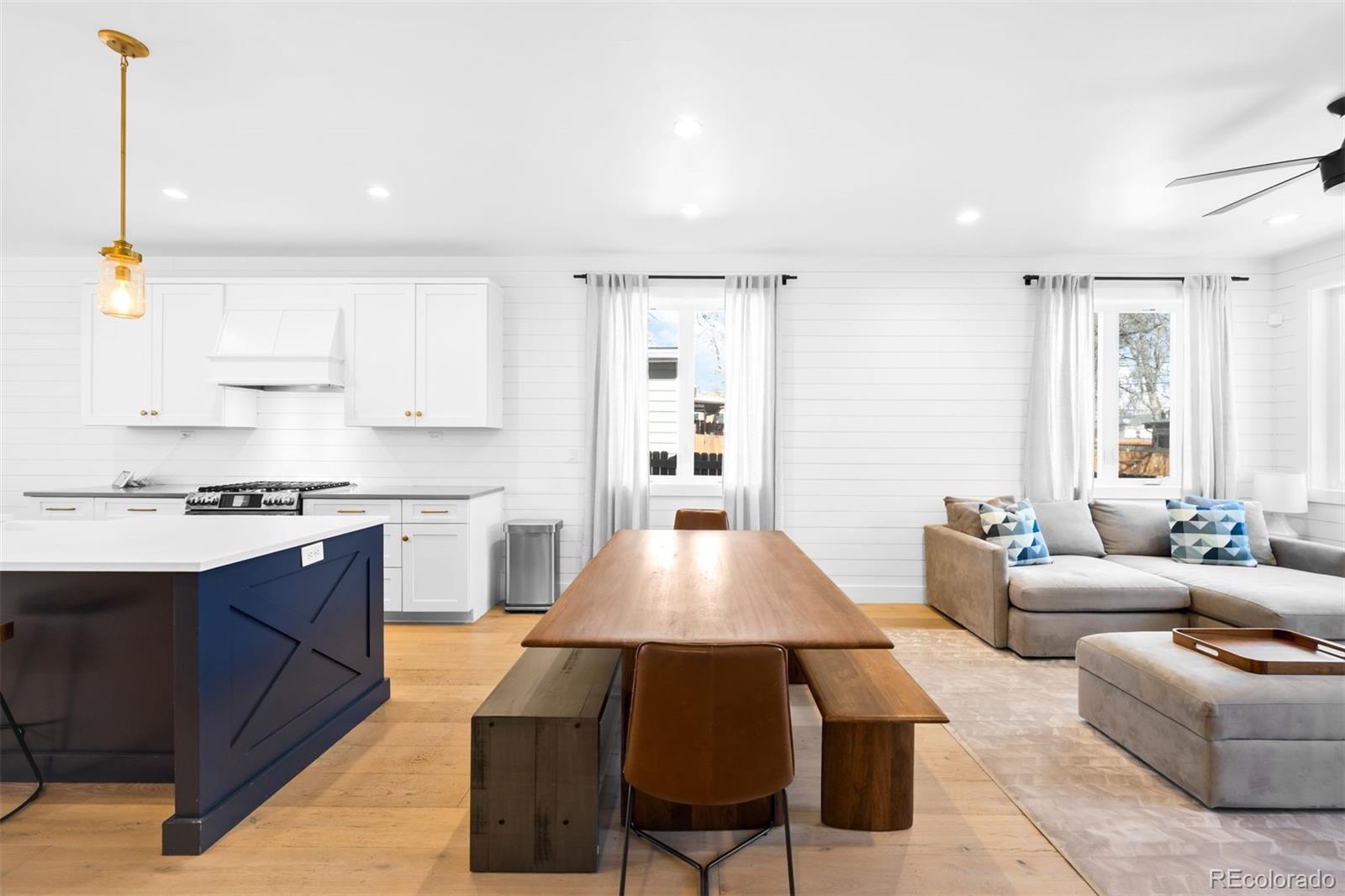 Perfectly positioned just blocks from the restaurants, coffee shops, and boutiques of South Broadway, this modern Englewood home offers a rare combination of walkable city living and spacious newer construction. Inside, a light-filled open floor plan seamlessly connects the kitchen, dining area, and living room, creating an inviting space ideal for both everyday living and effortless entertaining. The kitchen features quartz countertops, stainless steel appliances, white cabinetry, and a large center island, opening to a spacious living room anchored by a striking indoor-outdoor gas fireplace and large windows that fill the home with natural light. A main-floor bedroom and bathroom provide flexibility for a home office, a guest suite, or multigenerational living. Upstairs, the primary suite serves as a private retreat with generous closet space and a luxurious five-piece bathroom featuring dual vanities, quartz countertops, a soaking tub, and a glass-enclosed shower. Two additional bedrooms, a full bathroom, and a convenient upper-level laundry room complete the second floor. The finished basement adds valuable additional living space, perfect for a media room, home gym, playroom, or second living area, along with a private bedroom and bathroom ideal for guests. Outdoor spaces are designed for easy Colorado living with a welcoming covered front porch, a back deck for entertaining, and a low-maintenance turfed backyard leading to the detached two-car garage. Located in a highly convenient Englewood neighborhood with quick access to Craig Hospital & the Swedish Medical Center, South Broadway restaurants, Cherry Creek shopping, the Denver Tech Center, light rail, and major commuter routes, this home offers the perfect blend of modern design, flexible living space, and unbeatable location.