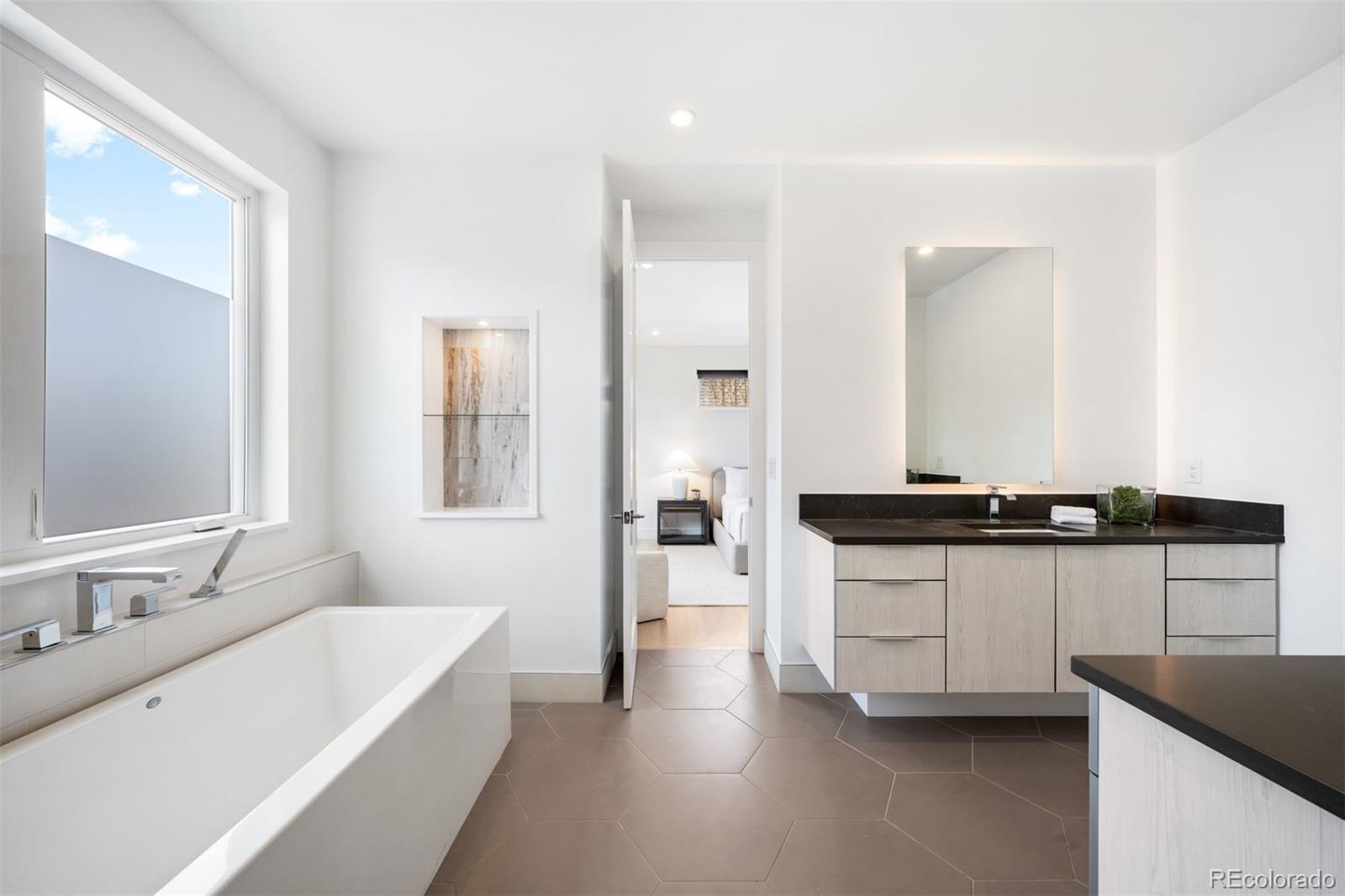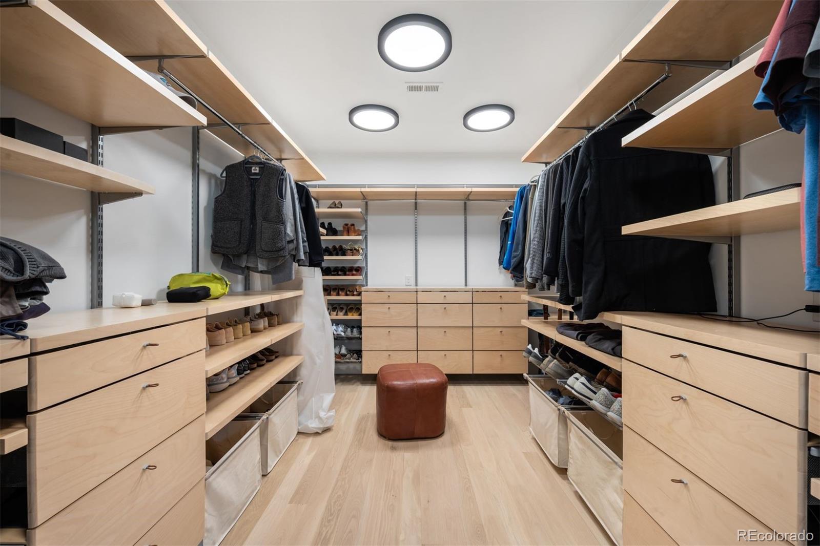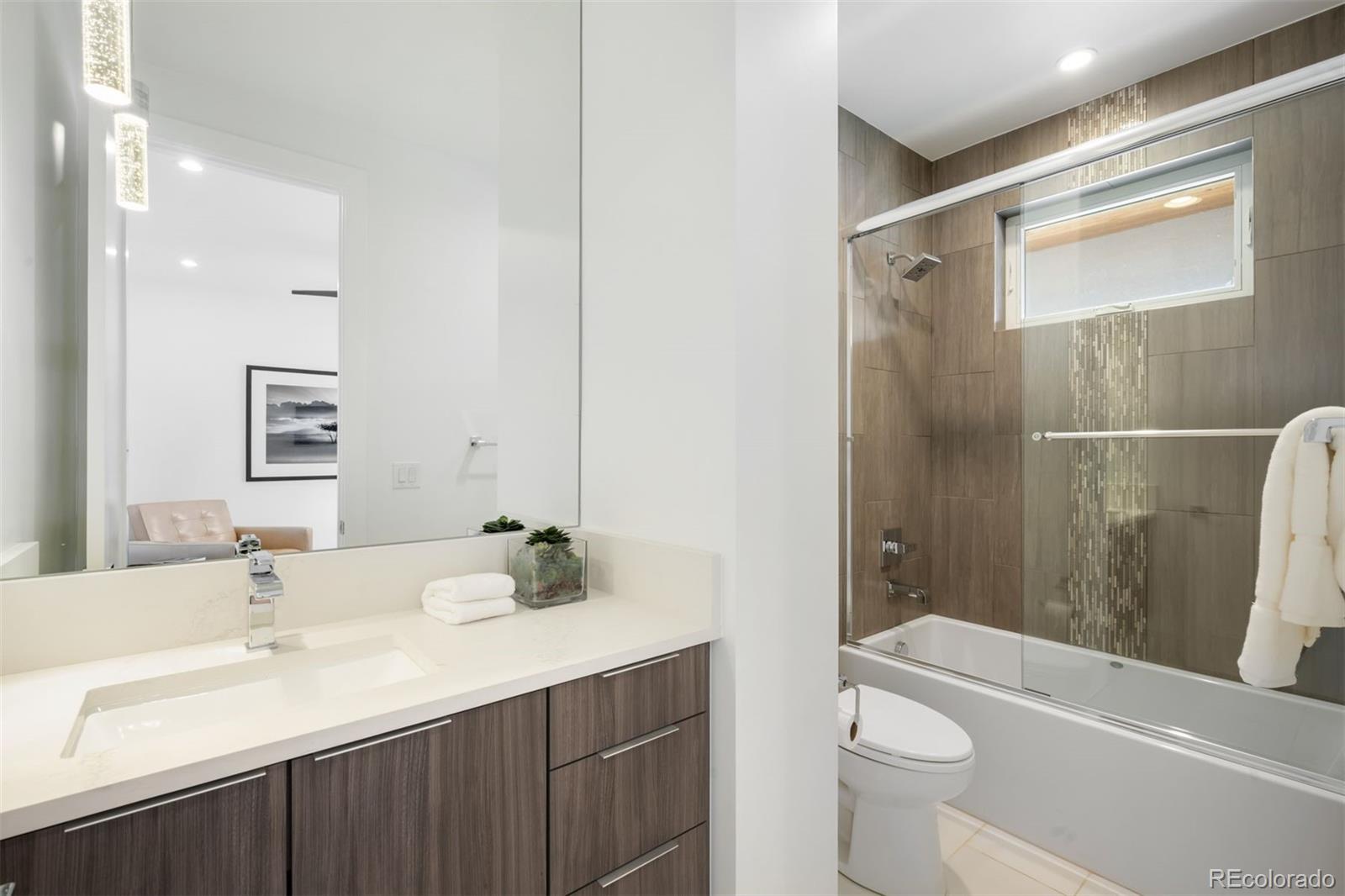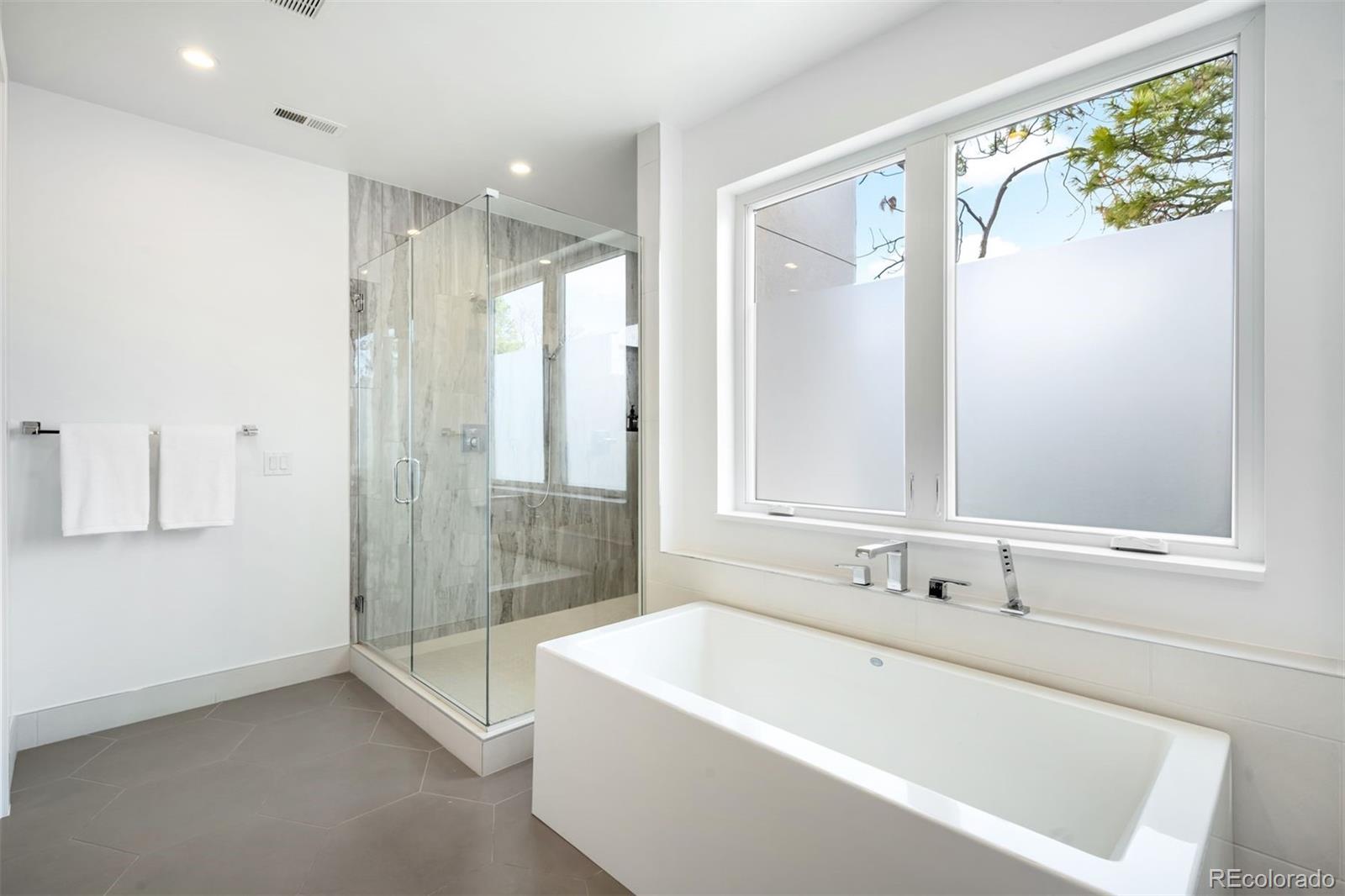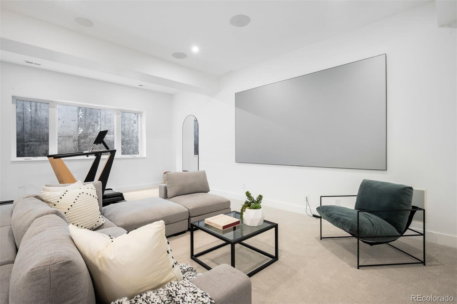 Set on one of the most coveted blocks in Stokes Belcaro, this California Contemporary residence pairs striking architecture with warm, light-filled interiors on a beautifully landscaped 10,200-square-foot lot, just moments from Cherry Creek. Step inside to a dramatic great room with soaring ceilings and expansive windows and sliding doors that flood the home with natural light and seamlessly connect indoor and outdoor living. The open layout flows effortlessly from the living area to the backyard, creating an ideal setting for both everyday living and entertaining. At the heart of the home, the chef's kitchen features sleek European Kabi cabinetry, quartz countertops, and high-end appliances, including a built-in Miele coffee machine, six-burner gas range, and dual dishwashers. A walk-in pantry and butler's pantry streamline the kitchen's form and function. Upstairs, the primary suite offers a private retreat with a fireplace, custom walk-in closet, and spa-like five-piece bath with a soaking tub and dual-head shower. Three additional en-suite bedrooms and a spacious laundry room complete the upper level. The finished lower level is designed for entertaining and relaxation, featuring 10-foot ceilings, a large recreation space, a fitness studio, a wet bar, and a private guest suite. Additional highlights include smart HVAC, custom closet systems, and a rare oversized four-car attached garage. Ideally located near the Cherry Creek Bike Trail, nearby parks, Cherry Creek North, shopping, dining, and the farmers market, this home offers an exceptional lifestyle in a premier location.