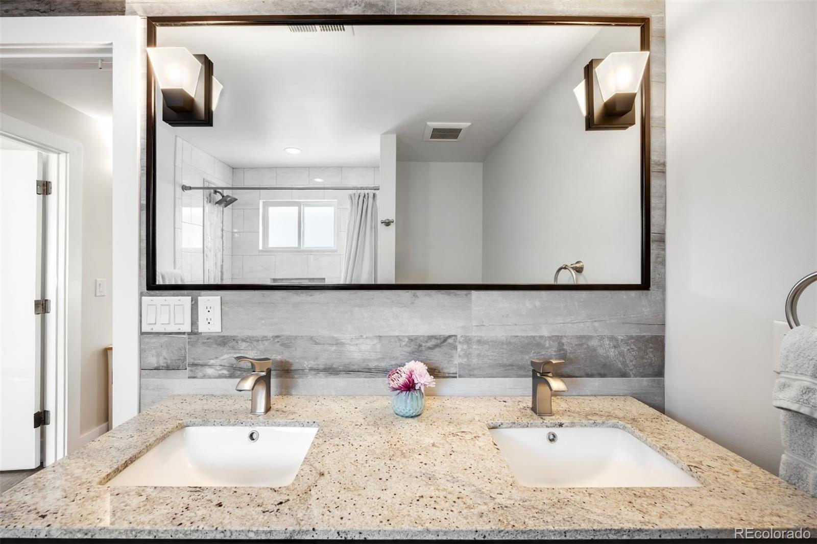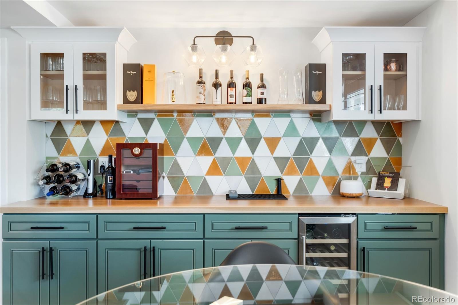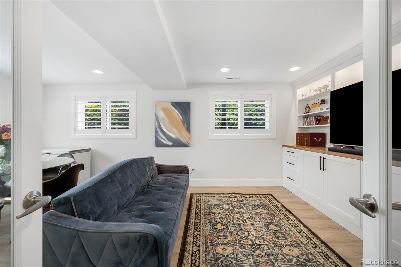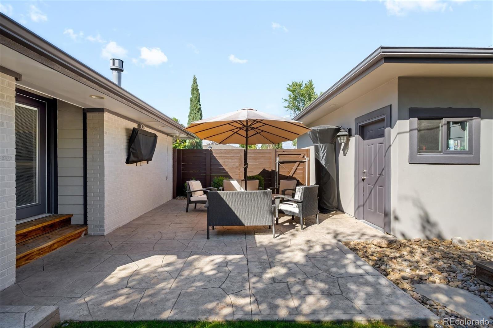 In the heart of Crestmoor Park, this beautifully updated 5-bedroom, 4-bath home blends thoughtful design, modern amenities, and a prime location just steps from one of Denver's most cherished parks. The chef's kitchen is designed for everyday ease and entertaining, featuring granite countertops, a large island, open shelving, a coffee bar, and the rare combination of dual Bosch ovens, dual dishwashers, and dual sinks. Natural light pours in from oversized windows, with direct access to the side patio extending the space outdoors. The dining area is bright and welcoming, while the living room showcases soaring ceilings, a sleek stone-surround fireplace, and doors that open to the private backyard. The lower level is an entertainer's dream with a custom wet bar, built-ins, and space for a media lounge or game table. A secluded guest suite with an adjacent full bath completes this level. Upstairs, three secondary bedrooms share full baths and provide flexible options for playrooms, home offices, or guest quarters. The third floor is reserved for the primary suite, a retreat with its own fireplace, a walk-in closet, and a spa-like 5-piece bath with dual vanities, soaking tub, and walk-in shower. A conveniently placed laundry room adds practicality. Outdoors, the backyard is landscaped for gatherings with a stamped concrete patio, dining space, and mature greenery. The detached two-car garage includes a mini-split system for year-round comfort, and the detached Studio Shed, also with a mini-split, is ideal as a home office, gym, or creative studio. Just steps from Crestmoor Park and within walking distance of Pete's Market, Park Burger, and Boulevard One at Lowry, this home is also minutes from Cherry Creek. Top-rated schools, neighborhood favorites like High Point Creamery and Call Your Mother Deli, and community amenities including the Crestmoor Community Center are all nearby. This home is the complete package: spacious, stylish, and perfectly located.