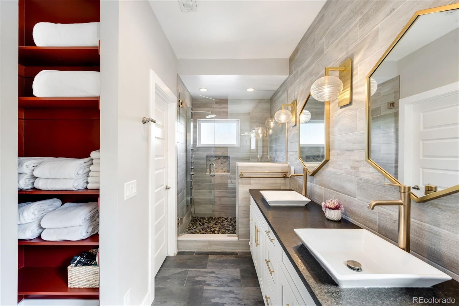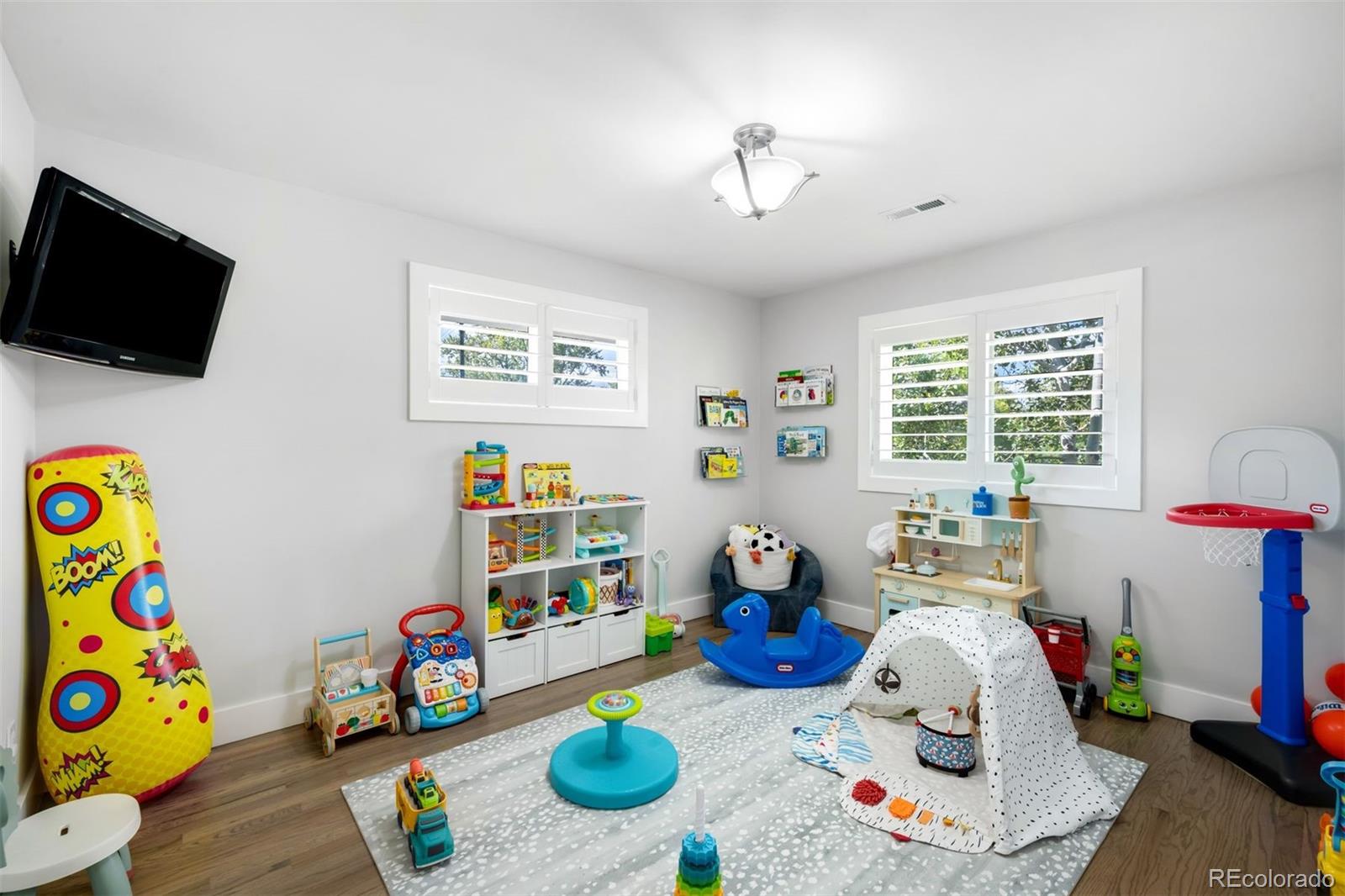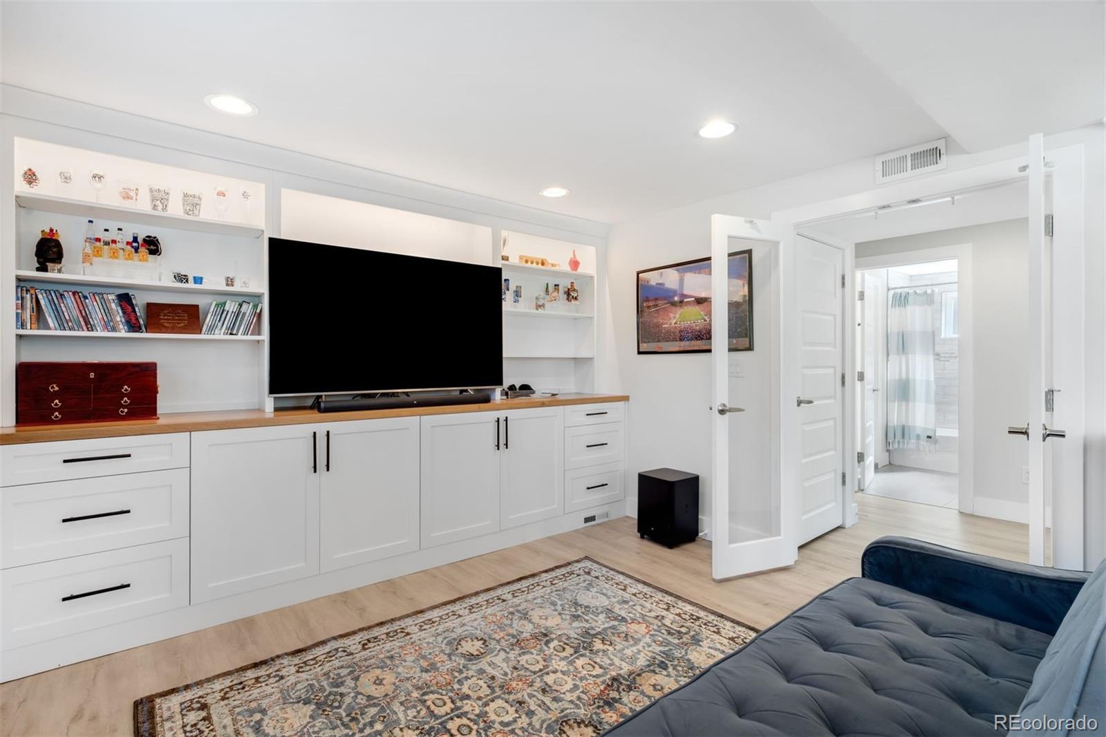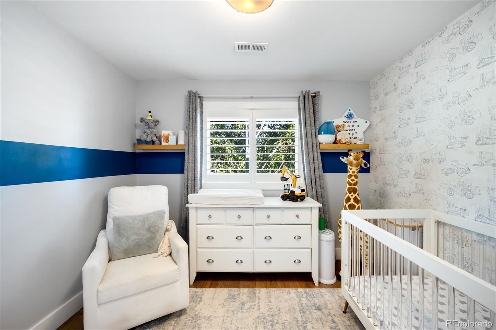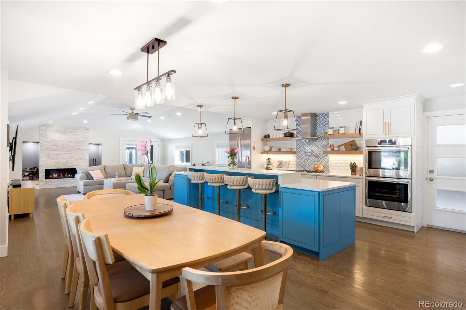 In the heart of Crestmoor Park, this beautifully updated 5-bedroom, 4-bath home blends thoughtful design, modern amenities, and a prime location just steps from one of Denver's most cherished parks. The chef's kitchen is designed for everyday ease and entertaining, featuring granite countertops, a large island, open shelving, a coffee bar, and the rare combination of dual Bosch ovens, dual dishwashers, and dual sinks. Natural light pours in from oversized windows, with direct access to the side patio extending the space outdoors. The dining area is bright and welcoming, while the living room showcases soaring ceilings, a sleek stone-surround fireplace, and doors that open to the private backyard. The lower level is an entertainer's dream with a custom wet bar, built-ins, and space for a media lounge or game table. A secluded guest suite with an adjacent full bath completes this level. Upstairs, three secondary bedrooms share full baths and provide flexible options for playrooms, home offices, or guest quarters. The third floor is reserved for the primary suite, a retreat with its own fireplace, a walk-in closet, and a spa-like 5-piece bath with dual vanities, soaking tub, and walk-in shower. A conveniently placed laundry room adds practicality. Outdoors, the backyard is landscaped for gatherings with a stamped concrete patio, dining space, and mature greenery. The detached two-car garage includes a mini-split system for year-round comfort, and the detached Studio Shed, also with a mini-split, is ideal as a home office, gym, or creative studio. Just steps from Crestmoor Park and within walking distance of Pete's Market, Park Burger, and Boulevard One at Lowry, this home is also minutes from Cherry Creek. Top-rated schools, neighborhood favorites like High Point Creamery and Call Your Mother Deli, and community amenities including the Crestmoor Community Center are all nearby. This home is the complete package: spacious, stylish, and perfectly located.