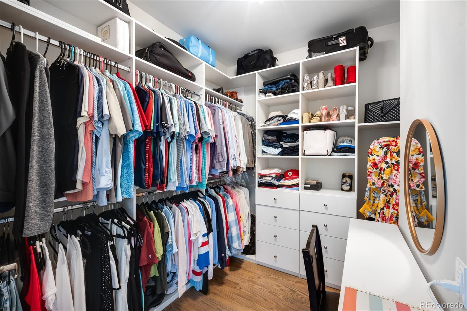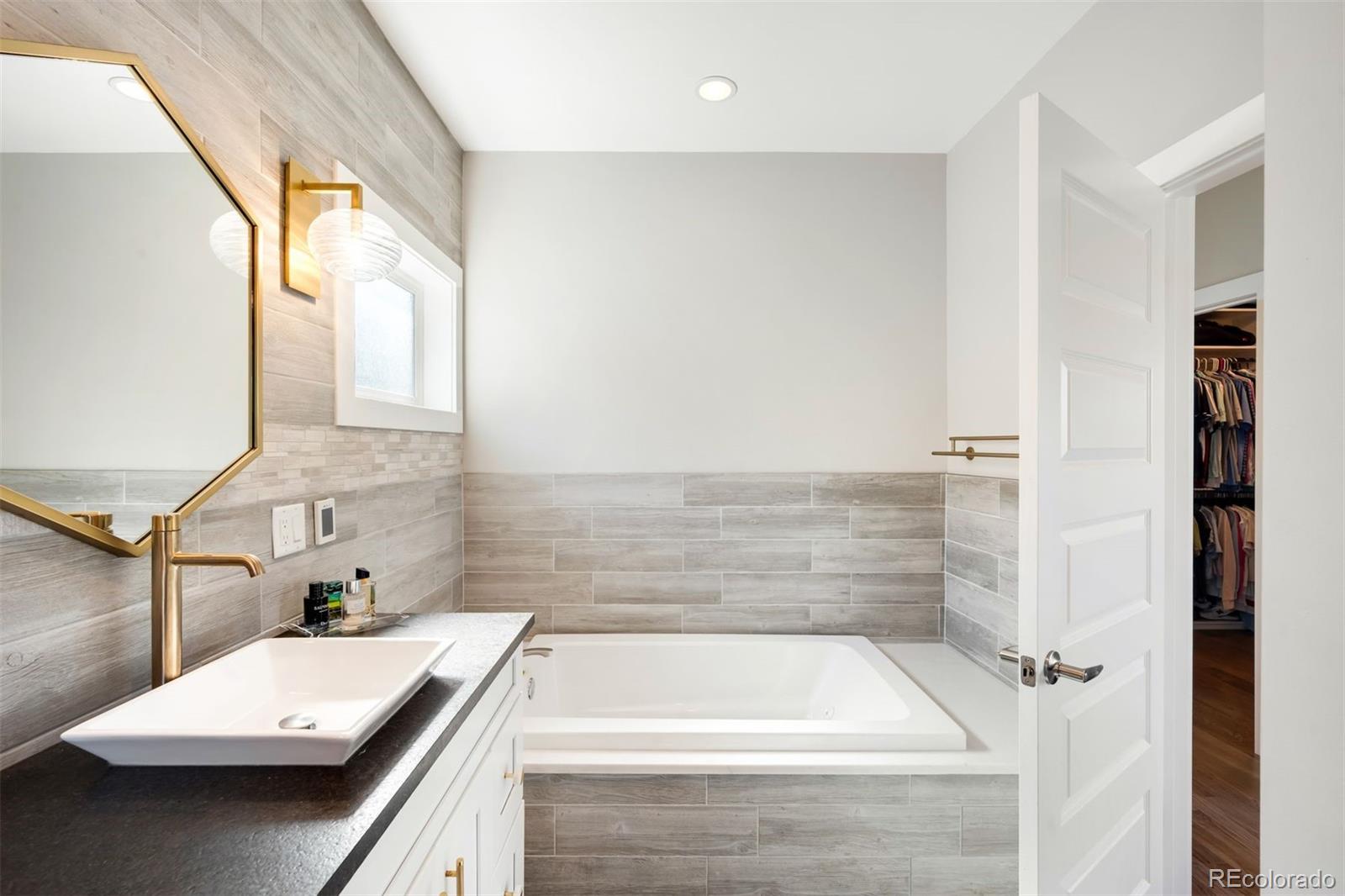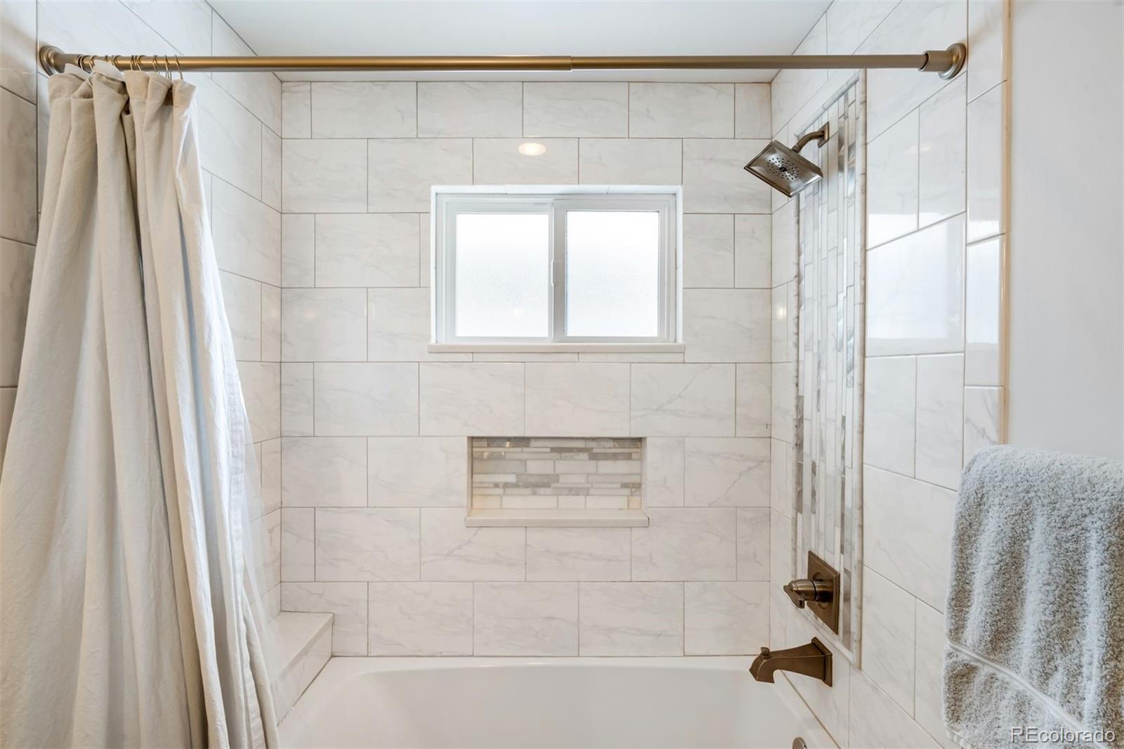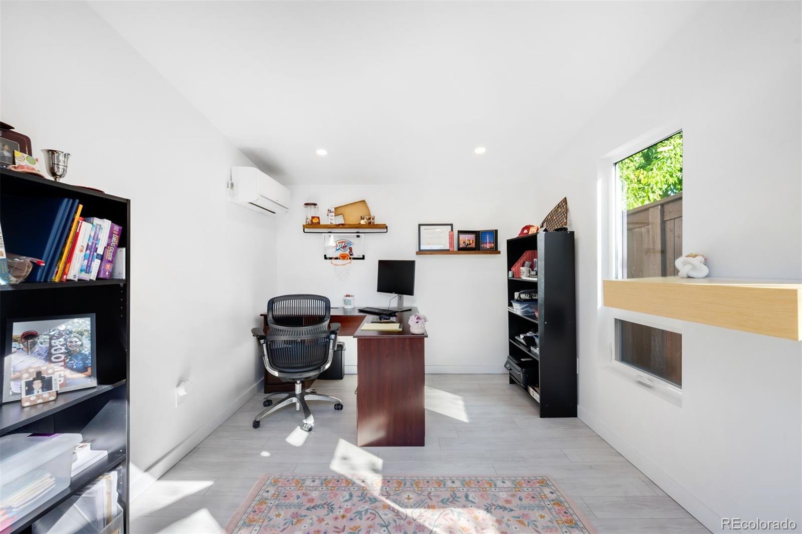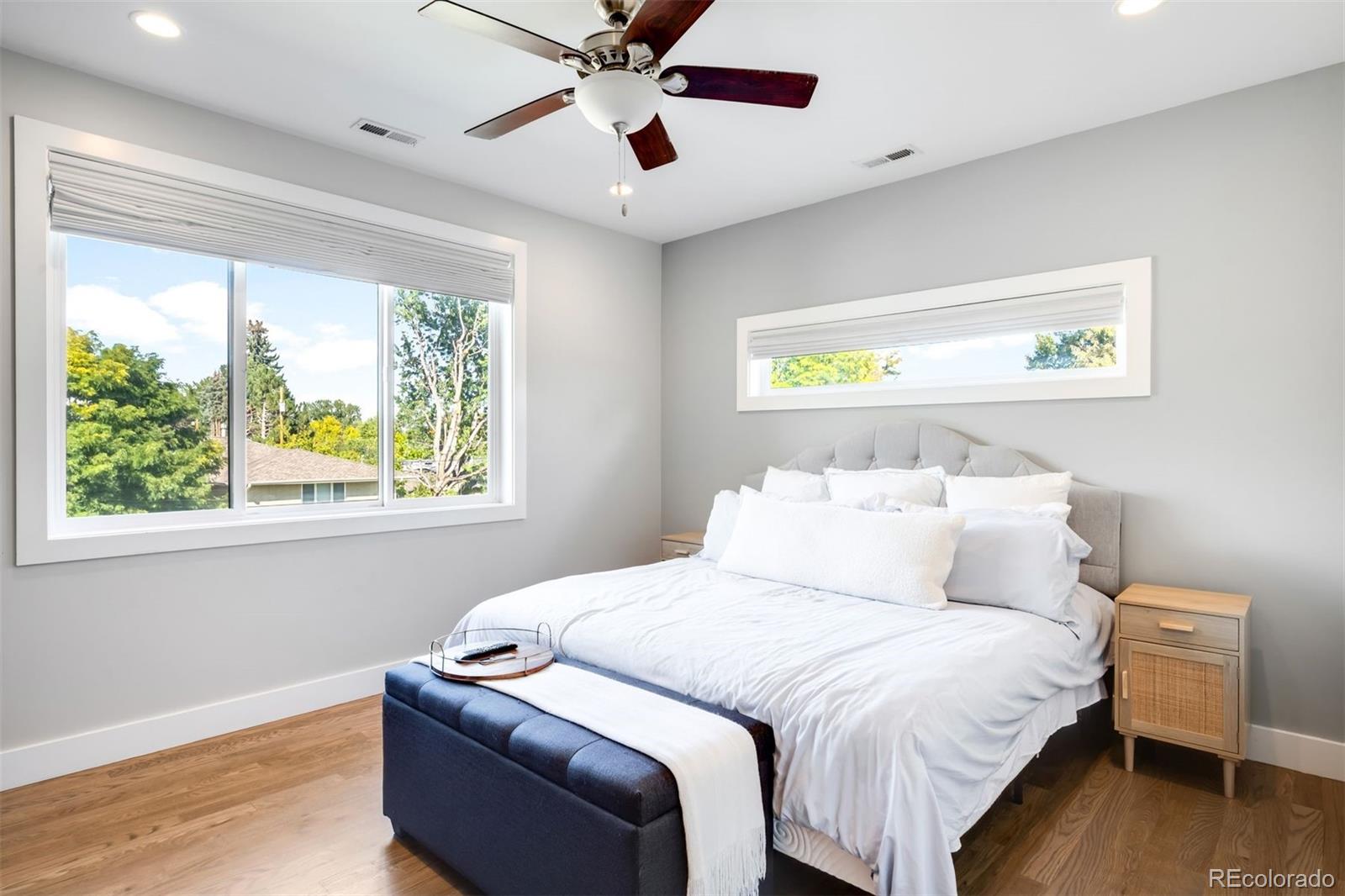 In the heart of Crestmoor Park, this beautifully updated 5-bedroom, 4-bath home blends thoughtful design, modern amenities, and a prime location just steps from one of Denver's most cherished parks. The chef's kitchen is designed for everyday ease and entertaining, featuring granite countertops, a large island, open shelving, a coffee bar, and the rare combination of dual Bosch ovens, dual dishwashers, and dual sinks. Natural light pours in from oversized windows, with direct access to the side patio extending the space outdoors. The dining area is bright and welcoming, while the living room showcases soaring ceilings, a sleek stone-surround fireplace, and doors that open to the private backyard. The lower level is an entertainer's dream with a custom wet bar, built-ins, and space for a media lounge or game table. A secluded guest suite with an adjacent full bath completes this level. Upstairs, three secondary bedrooms share full baths and provide flexible options for playrooms, home offices, or guest quarters. The third floor is reserved for the primary suite, a retreat with its own fireplace, a walk-in closet, and a spa-like 5-piece bath with dual vanities, soaking tub, and walk-in shower. A conveniently placed laundry room adds practicality. Outdoors, the backyard is landscaped for gatherings with a stamped concrete patio, dining space, and mature greenery. The detached two-car garage includes a mini-split system for year-round comfort, and the detached Studio Shed, also with a mini-split, is ideal as a home office, gym, or creative studio. Just steps from Crestmoor Park and within walking distance of Pete's Market, Park Burger, and Boulevard One at Lowry, this home is also minutes from Cherry Creek. Top-rated schools, neighborhood favorites like High Point Creamery and Call Your Mother Deli, and community amenities including the Crestmoor Community Center are all nearby. This home is the complete package: spacious, stylish, and perfectly located.