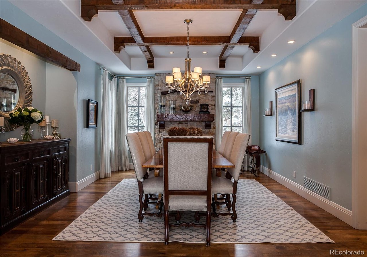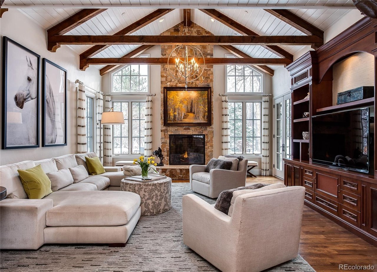 Stunning, custom home poised on a beautiful treed acre in Old Cherry Hills Village. Newly remodeled, fabulous, gourmet kitchen. Adjacent family room with stone fireplace and timbered accents. Limestone and hickory floors. Finished lower level with bar, theatre, wine cellar, guest bedroom and bath. Beautiful landscaping with an inviting pool, hot tub and fire pit. Exceptional quality and finishes throughout!
