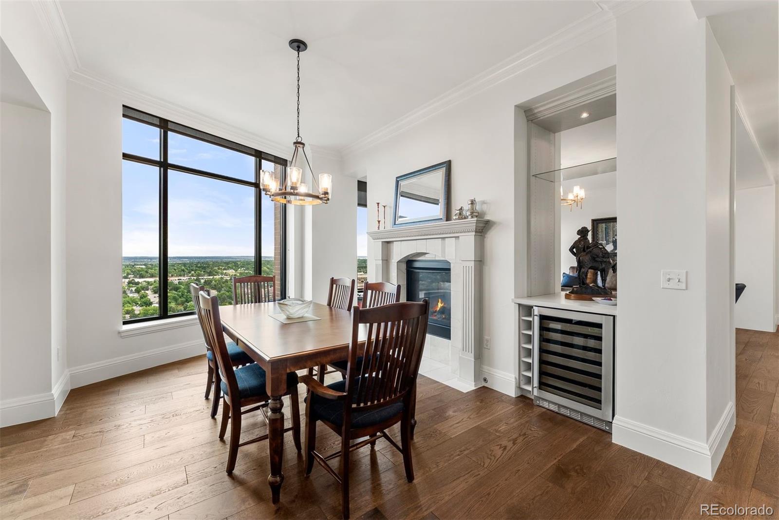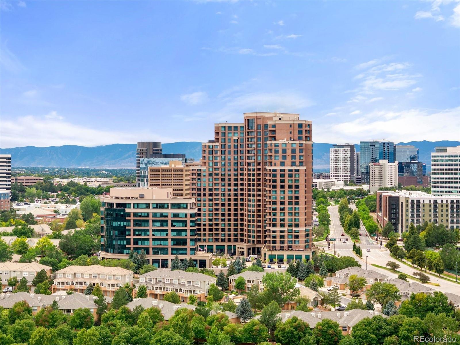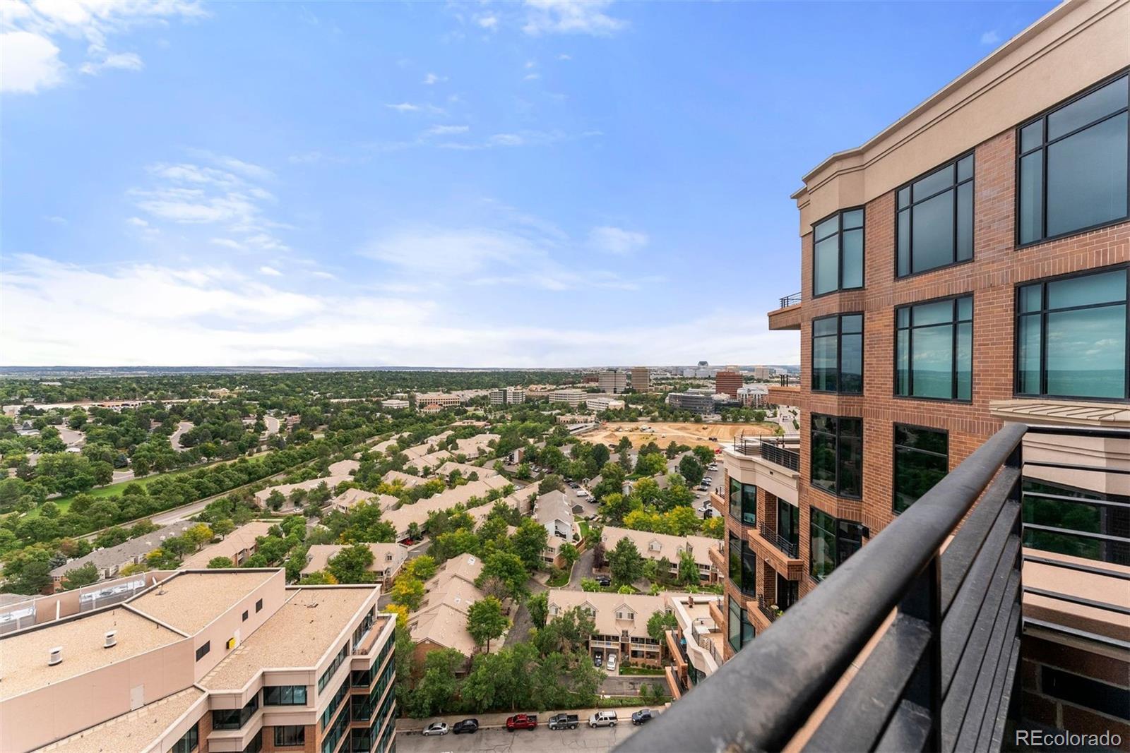 Soaring high above the Denver Tech Center, Residence 2301 at Penterra Plaza offers a rare blend of refinement, prestige, and elevated condominium living. This southeast-facing corner residence is framed by floor-to-ceiling windows with sweeping views of Cherry Creek Reservoir and beyond. Morning light fills the interiors while the southern and eastern exposures keep the home naturally cool throughout the day. An extensive renovation elevates the home with wide-plank Walnut hardwood flooring, designer lighting, fresh paint, and UV-protective shades with blackout screens in the bedrooms. The chef's kitchen is both elegant and functional, showcasing striking new countertops and backsplash, premium appliances, updated fixtures, and a converted walk-in pantry. The primary suite is a serene retreat with a private sitting area, an oversized walk-in closet, and a spa-inspired bath reimagined with custom cabinetry, a glass shower, and luxury finishes. Expansive living and dining rooms, each anchored by a fireplace, connect seamlessly to a warm family room and private office, while the living room opens directly to a private balcony where views stretch endlessly across Cherry Creek Reservoir and the eastern plains. Residence 2301 includes two deeded parking spaces and two storage units. Penterra Plaza stands as the premier high-rise in DTC, offering unmatched amenities including a state-of-the-art business center, fully equipped fitness center, elegant community room with catering kitchen, and an expansive party terrace. Residents enjoy concierge service, secured parking, guest suites, and upcoming enhancements, including a redesigned lobby, new elevators, and a signature on-site restaurant. With effortless access to the area's best dining, shopping, and entertainment, this home delivers the perfect blend of privacy, prestige, and ease.