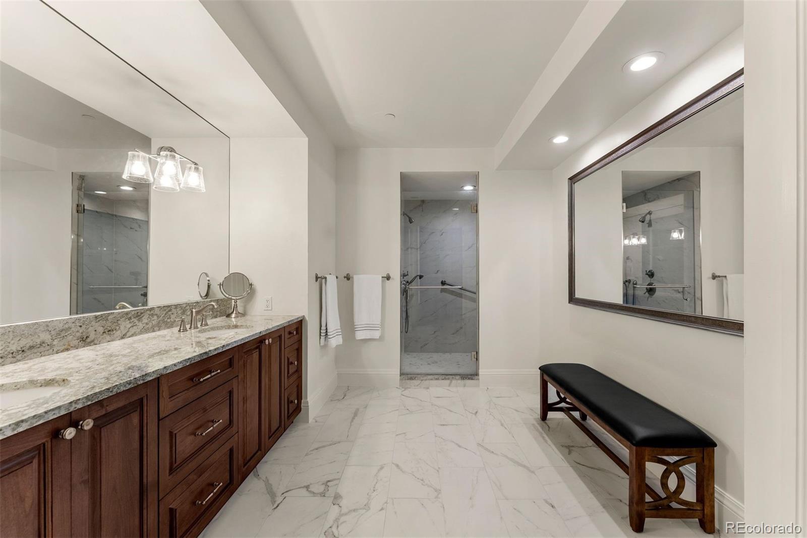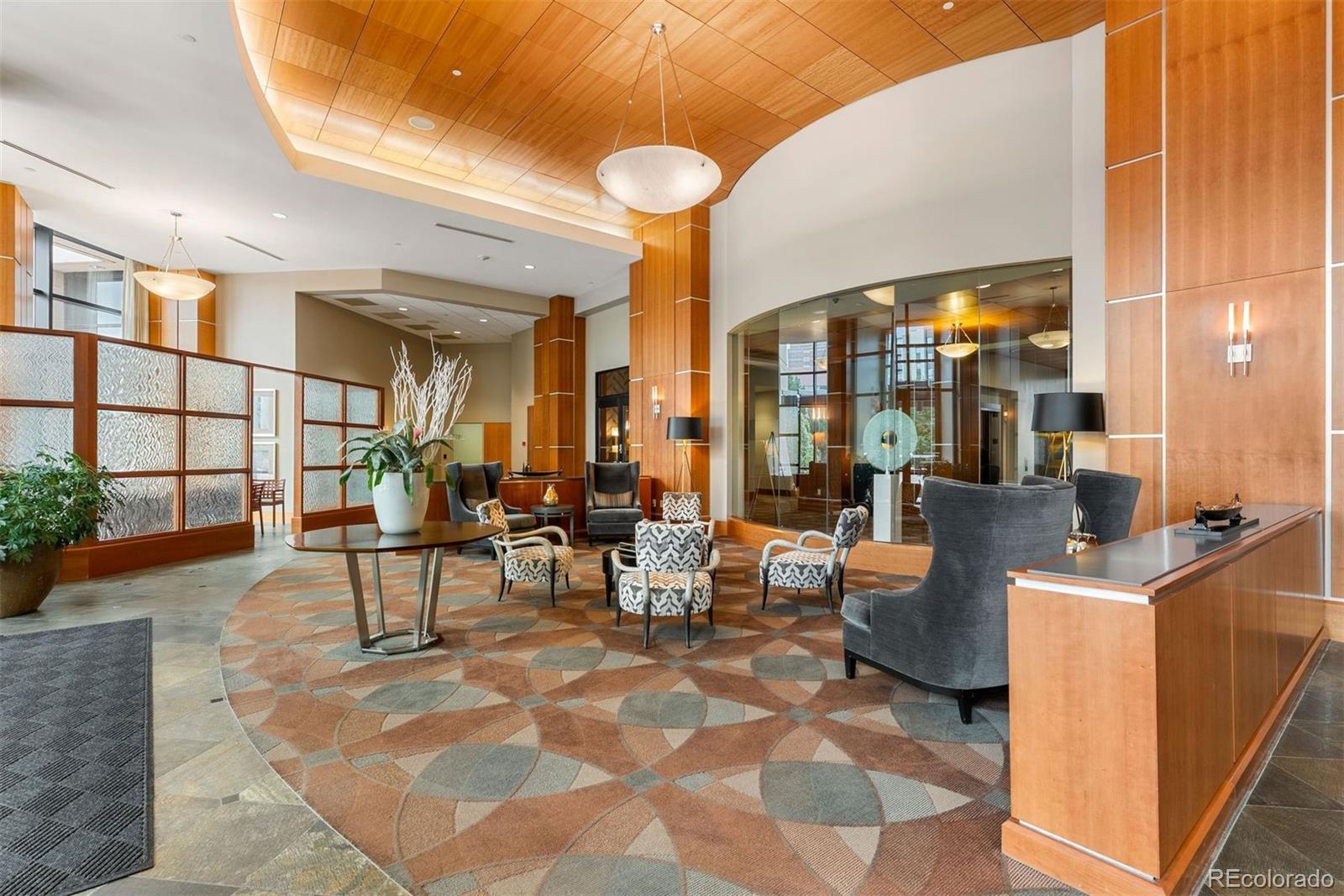 Soaring high above the Denver Tech Center, Residence 2301 at Penterra Plaza offers a rare blend of refinement, prestige, and elevated condominium living. This southeast-facing corner residence is framed by floor-to-ceiling windows with sweeping views of Cherry Creek Reservoir and beyond. Morning light fills the interiors while the southern and eastern exposures keep the home naturally cool throughout the day. An extensive renovation elevates the home with wide-plank Walnut hardwood flooring, designer lighting, fresh paint, and UV-protective shades with blackout screens in the bedrooms. The chef's kitchen is both elegant and functional, showcasing striking new countertops and backsplash, premium appliances, updated fixtures, and a converted walk-in pantry. The primary suite is a serene retreat with a private sitting area, an oversized walk-in closet, and a spa-inspired bath reimagined with custom cabinetry, a glass shower, and luxury finishes. Expansive living and dining rooms, each anchored by a fireplace, connect seamlessly to a warm family room and private office, while the living room opens directly to a private balcony where views stretch endlessly across Cherry Creek Reservoir and the eastern plains. Residence 2301 includes two deeded parking spaces and two storage units. Penterra Plaza stands as the premier high-rise in DTC, offering unmatched amenities including a state-of-the-art business center, fully equipped fitness center, elegant community room with catering kitchen, and an expansive party terrace. Residents enjoy concierge service, secured parking, guest suites, and upcoming enhancements, including a redesigned lobby, new elevators, and a signature on-site restaurant. With effortless access to the area's best dining, shopping, and entertainment, this home delivers the perfect blend of privacy, prestige, and ease.